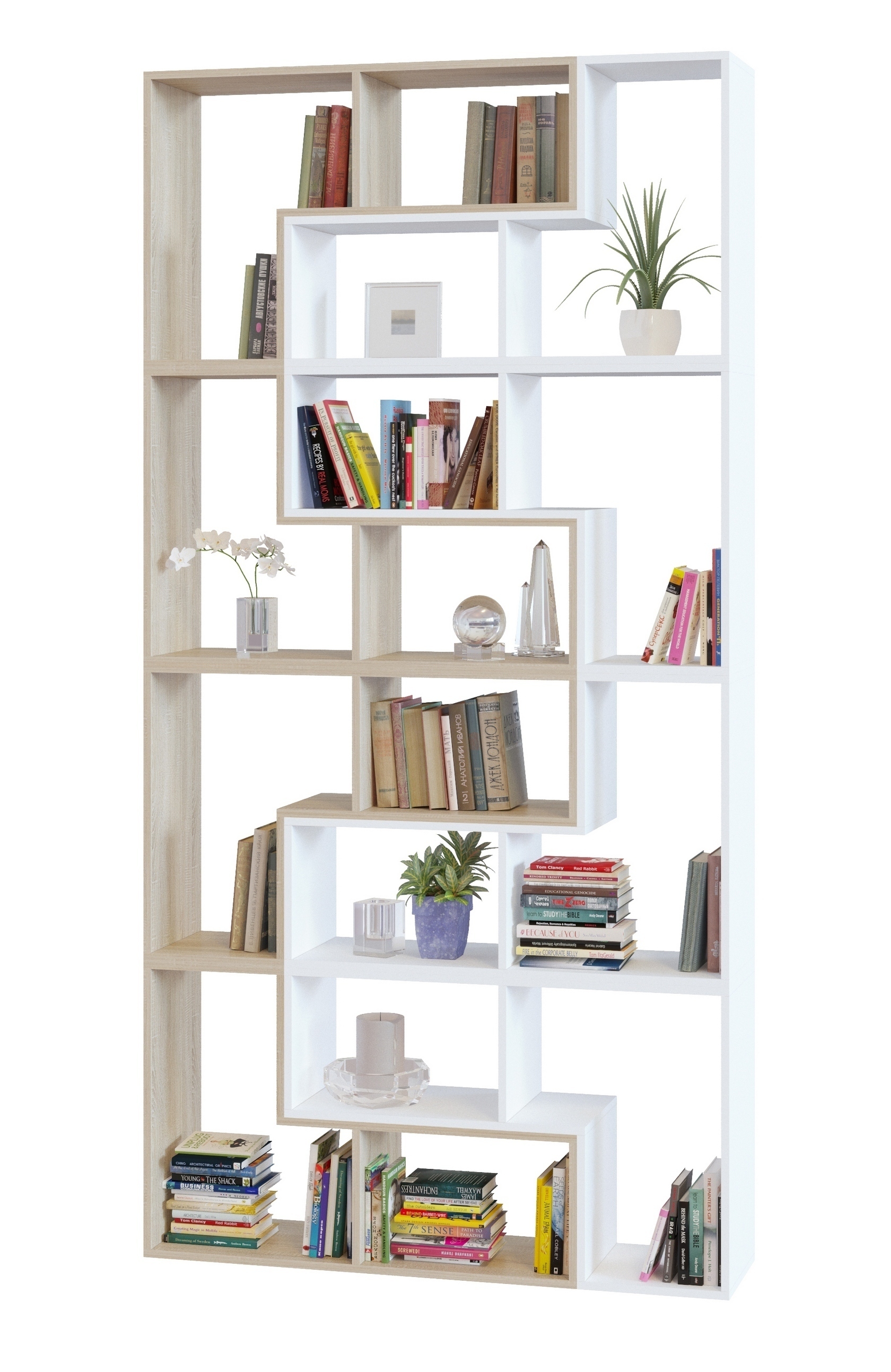 Высокий стеллаж органично впишется практически в любой интерьер и позволит создать полезное пространство для расстановки книг, журналов, коллекций и любимых мелочей. Нетривиальная геометрия открытых полочек понравится тем, кто ищет что-то нестандартное для меблировки гостиной, детской комнаты, домашнего кабинета или офисного помещения.
