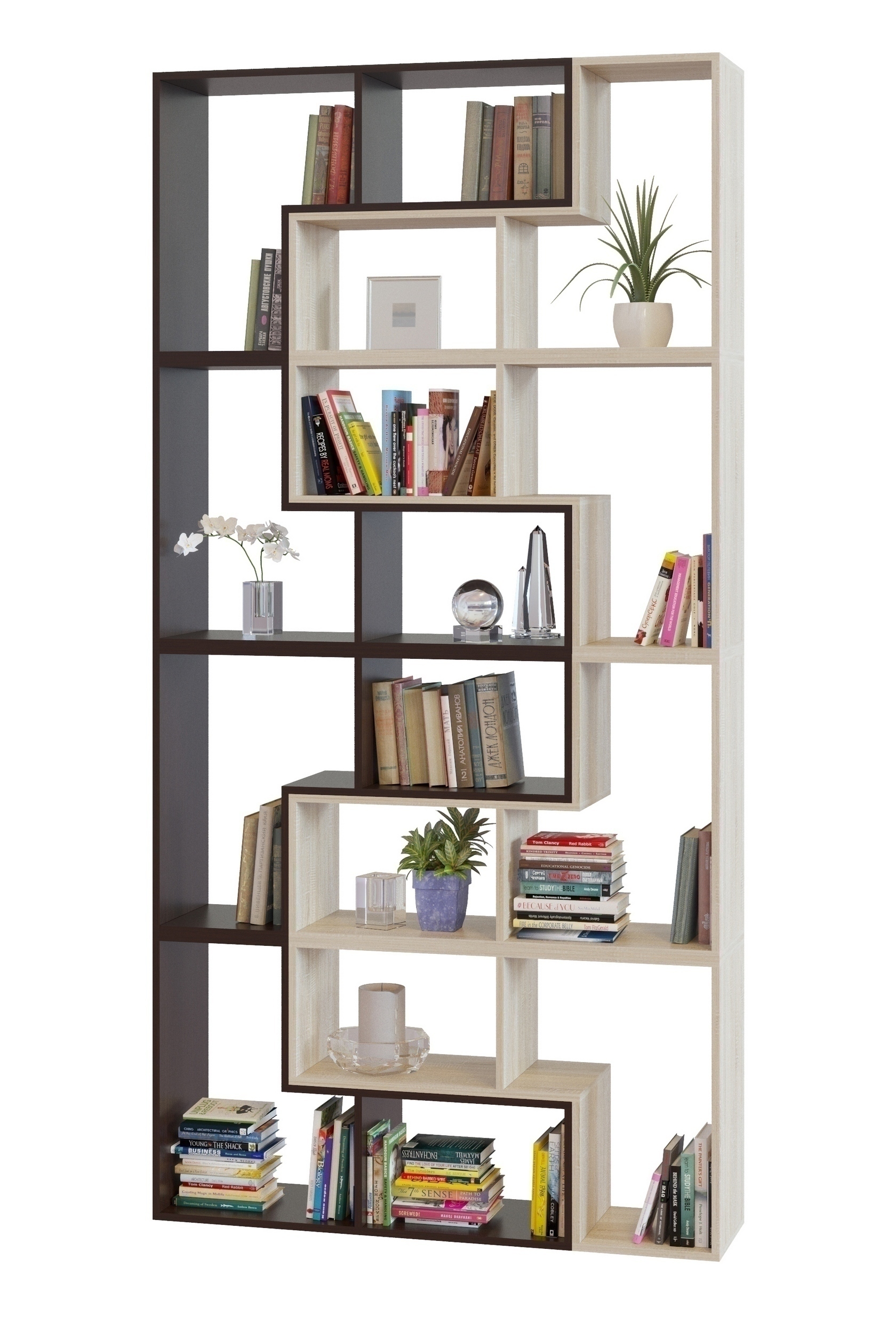 Высокий стеллаж органично впишется практически в любой интерьер и позволит создать полезное пространство для расстановки книг, журналов, коллекций и любимых мелочей. Нетривиальная геометрия открытых полочек понравится тем, кто ищет что-то нестандартное для меблировки гостиной, детской комнаты, домашнего кабинета или офисного помещения.