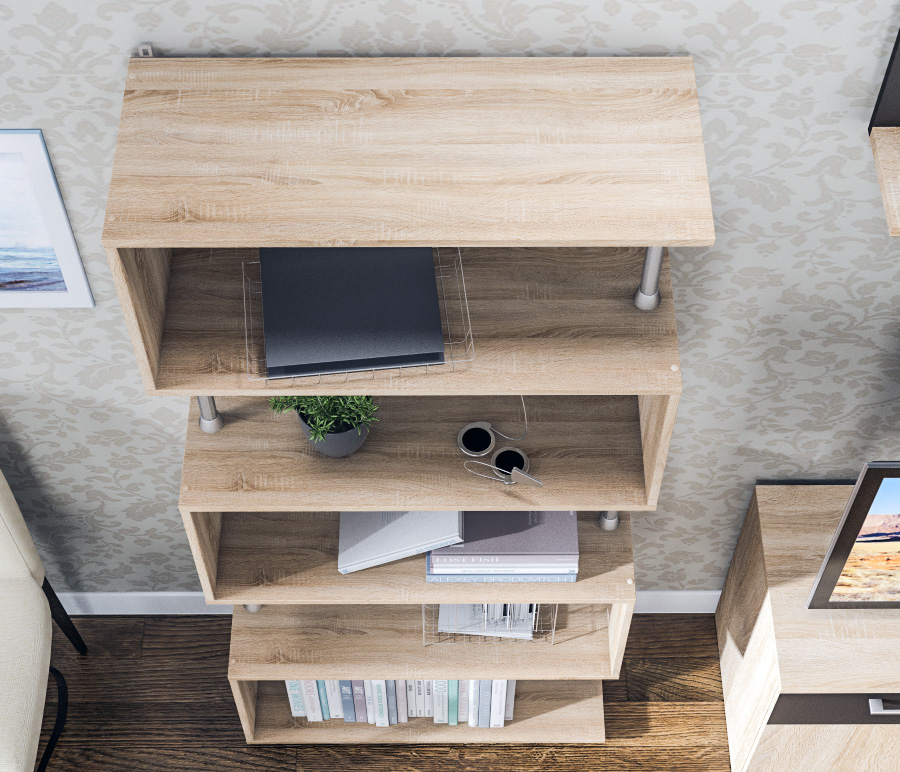 Производится стеллаж Кито из современного и прочного КДСП. Стеллаж оснащен протекторами или «лапками», которые не позволяют повредить пол.