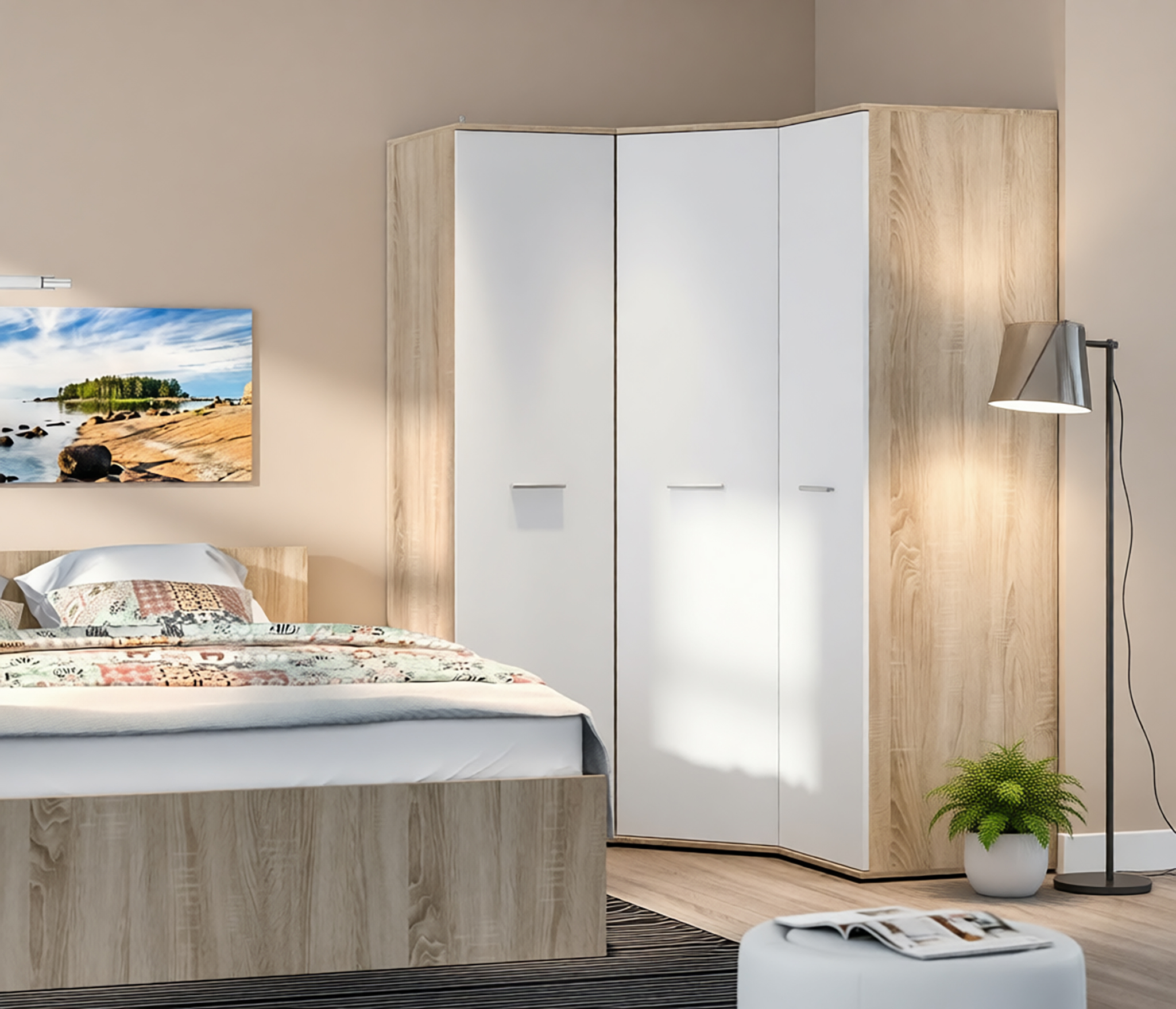 Габаритные размеры шкафа – ширина 90 см, высота 191 и глубина 55 см, позволят разместить его в небольшой прихожей, детской комнате или кабинете. Визуально шкаф можно разделить на два отделения. Большое отделение со штангой для развешивания верхней одежды и секция с тремя вместительными полками. Оба отделения объединены верхней антресолью. Произведен шкаф из современного и качественного материала. Внешняя отделка выполнена в двух оттенках. Цвет корпуса «Дуб Сонома», а фасадные поверхности – в белом цвете.