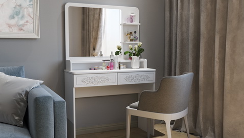 Туалетный столик – неотъемлемая часть спальни или женской комнаты. Каждая девочка, девушка или дама хочет иметь собственное пространство, свой уголок красоты, для того чтобы привести себя в порядок, нанести макияж, удобно и компактно расставить свою косметику и парфюмерию, аккуратно сложить украшения и аксессуары.
