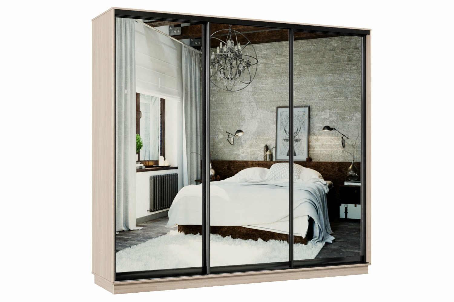 Шкаф-купе Премьер 56 Ясень шимо светлый (Черный Глянец)