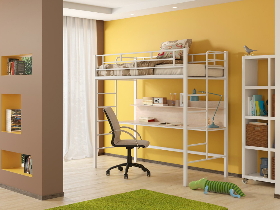 Кровать-чердак Амстердам Слоновая кость от Фабрики мебели 4 Сезона. Каркас выполнен из прочного металла, покрытого порошковой краской. Основание под матрас сварное, ламели металлические профиль 30х15 мм. Выдерживает нагрузку до 150 кг. Ножки кровати имеют пластиковые заглушки. Лестницы сварные, расположены с обеих сторон с торцов кровати. В комплект входит рабочая зона из ЛДСП 16 мм, крепится к основанию кровати. Рабочая поверхность стола 55х190 см, полка 15х190 см. В нашем ассортименте представлен большой выбор матрасов собственного производства из высококачественных материалов по низким ценам.