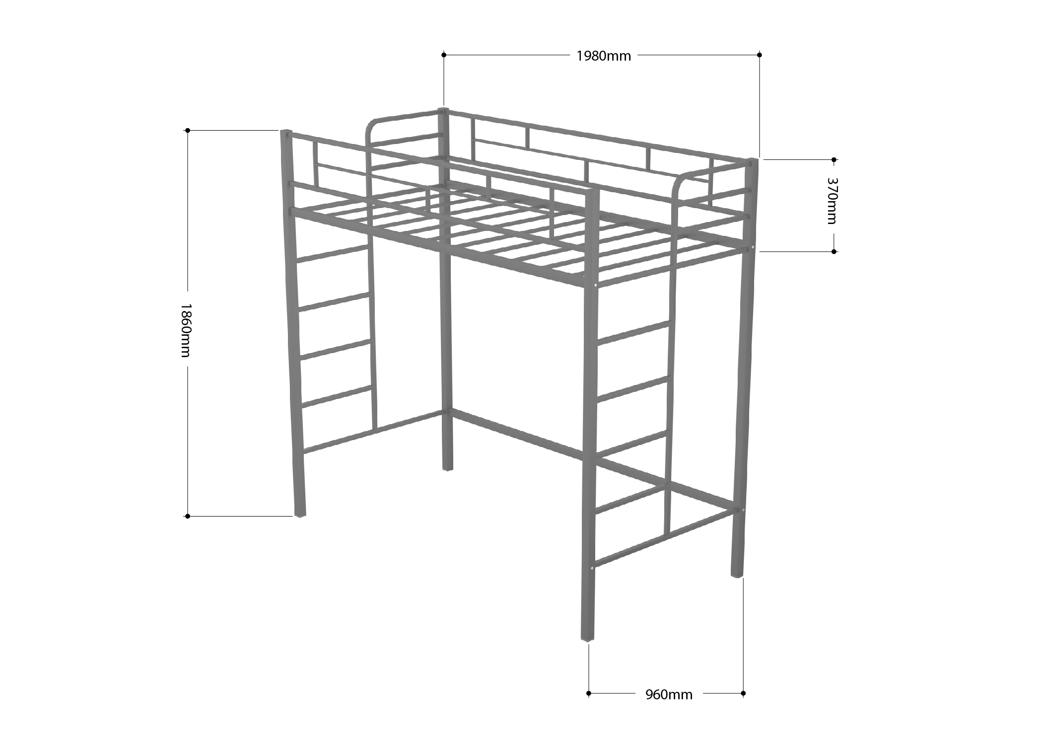 Ножки кровати имеют пластиковые заглушки. Высота основания от пола 152 см. Максимальная нагрузка до 150 кг.