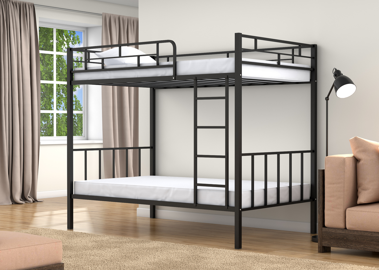 Спальные места 120х190 см., прочный стальной каркас, покрашен безопасной не имеющей запаха порошковой краской. Цвета на выбор: коричневый, черный, слоновая кость. Дополнительно комплектуется выдвижными ящиками и навесной полкой, материал ЛДСП 16 мм., цвета на выбор: дуб молочный или венге.
