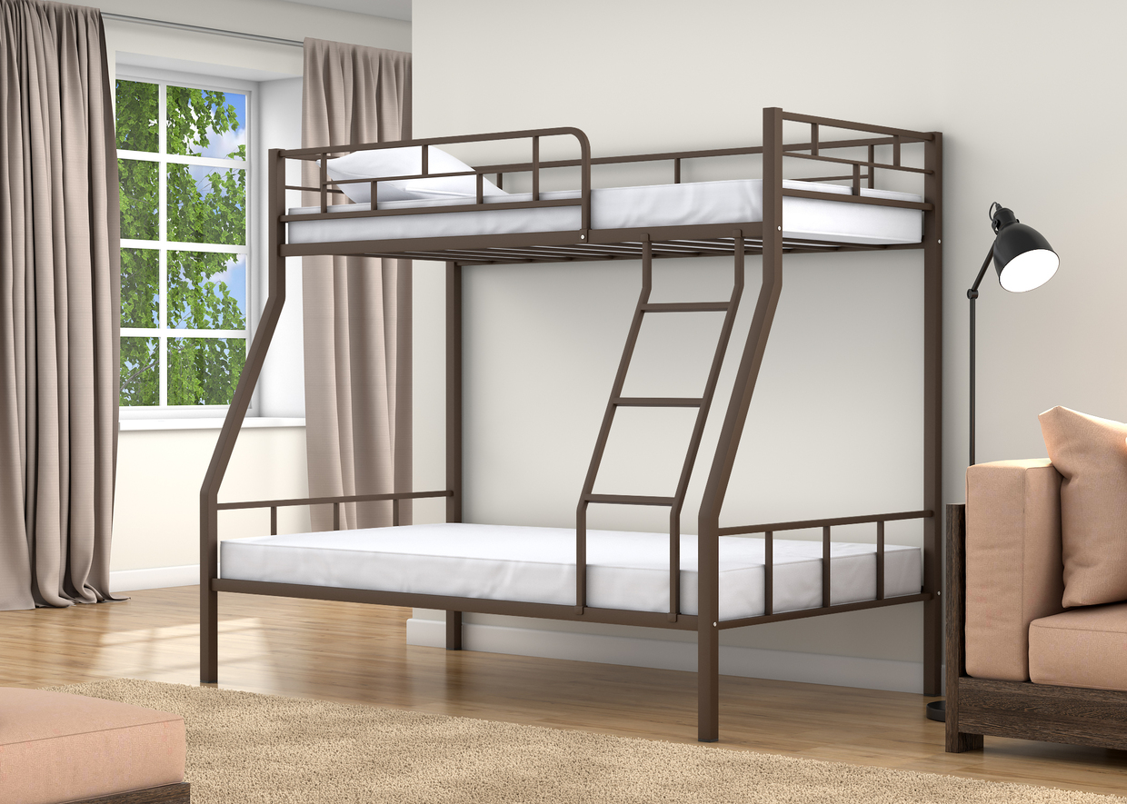 Двухъярусная кровать Раута , спальные места 90х190 см. и 120х190 см., прочный стальной каркас, покрашен безопасной не имеющей запаха порошковой краской. Цвета на выбор: коричневый, черный, слоновая кость. Дополнительно комплектуется выдвижными ящиками и навесной полкой, материал ЛДСП 16 мм., цвета на выбор: дуб молочный или венге.