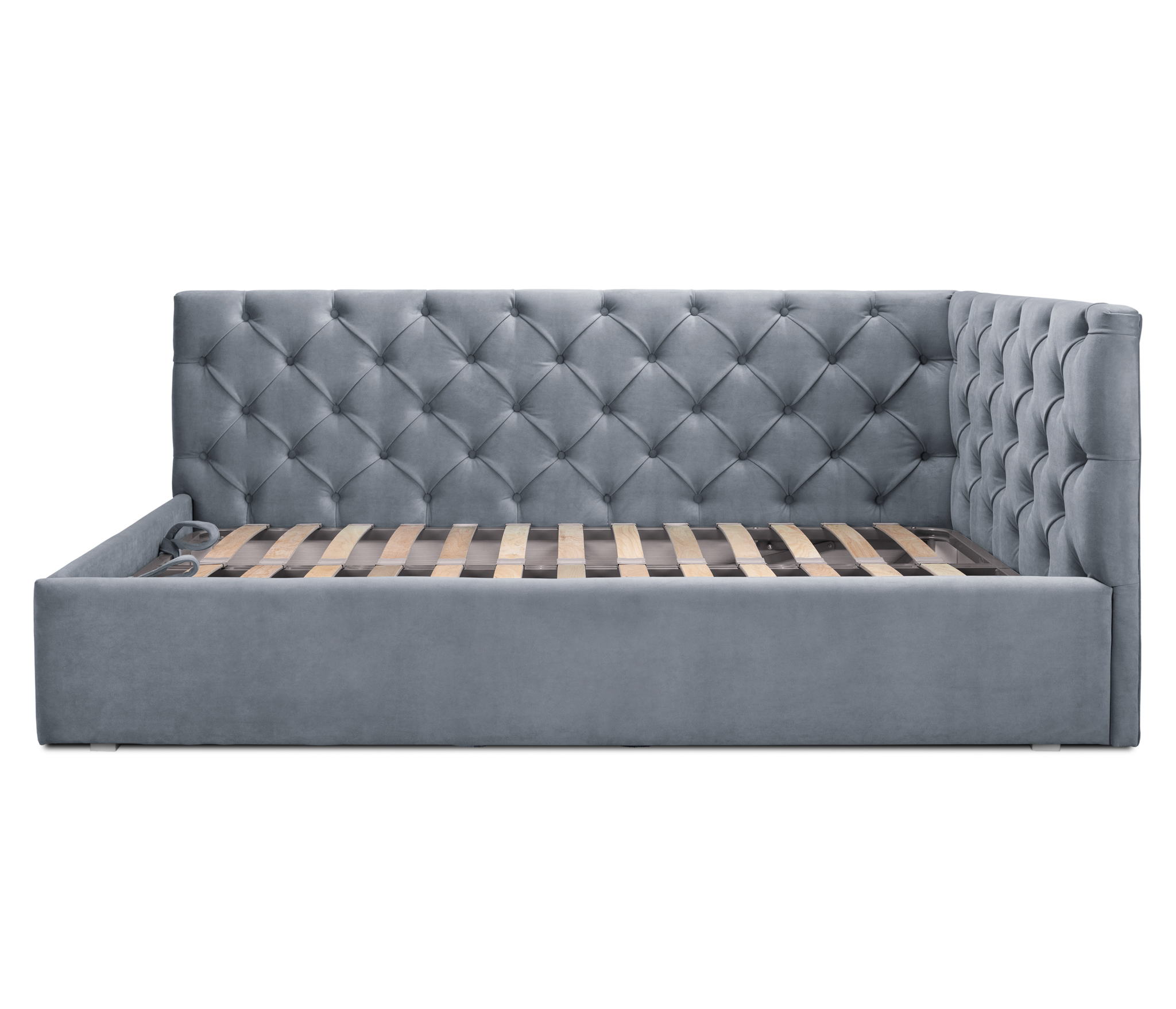 - Обивка кровати выполнена в микровелюре с отличными техническими характеристиками, легко чистится и сохраняет свои свойства;