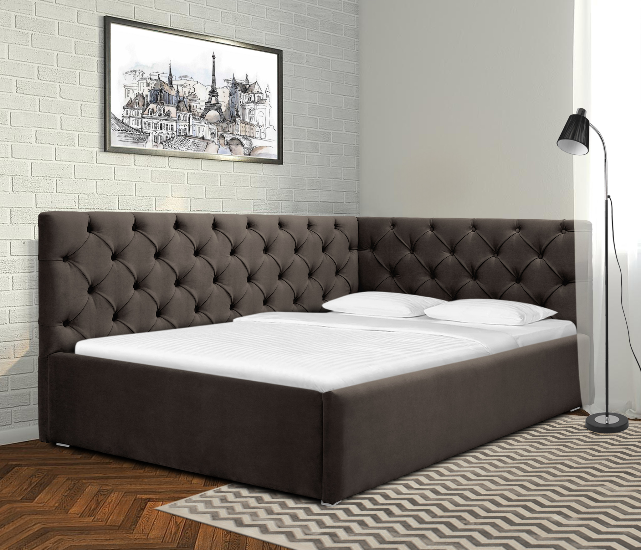 Отзывы о Столплит Кровать с мягким изголовьем угловая Оливия 1400 с подъемным механизмом, микровелюр Коричневый