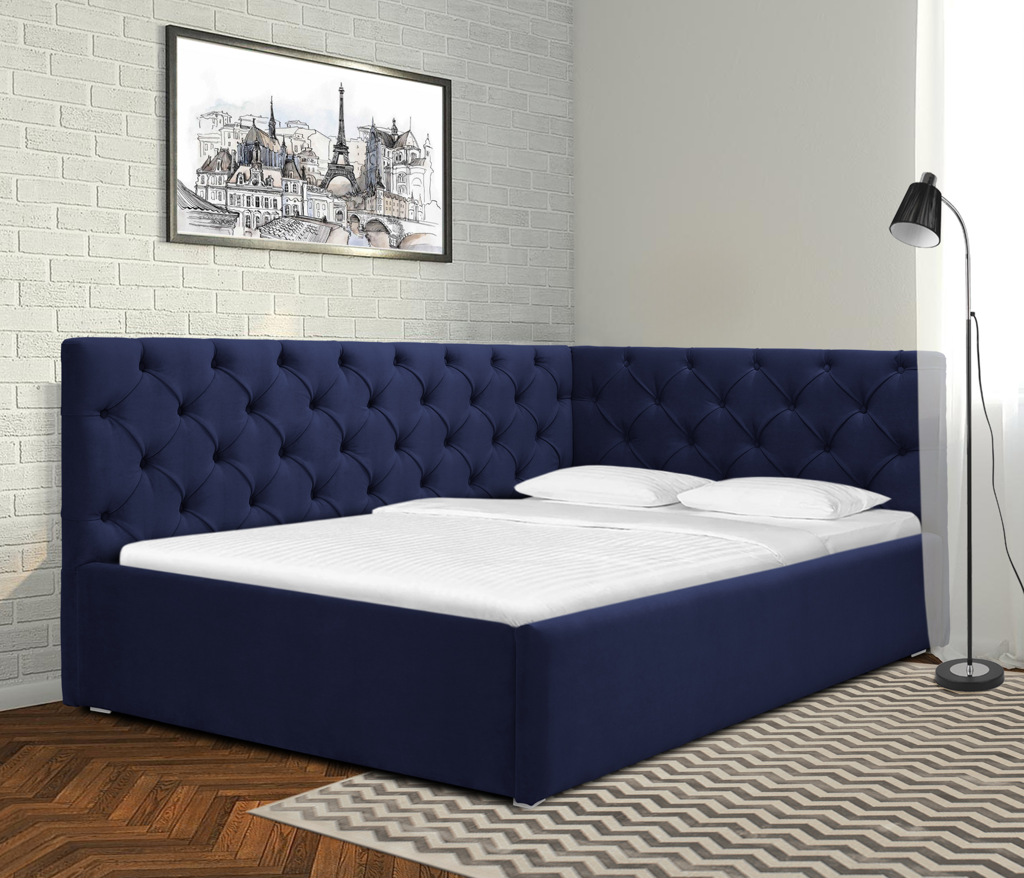 Отзывы о Столплит Кровать с мягким изголовьем угловая Оливия 1400 с подъемным механизмом, микровелюр Синий