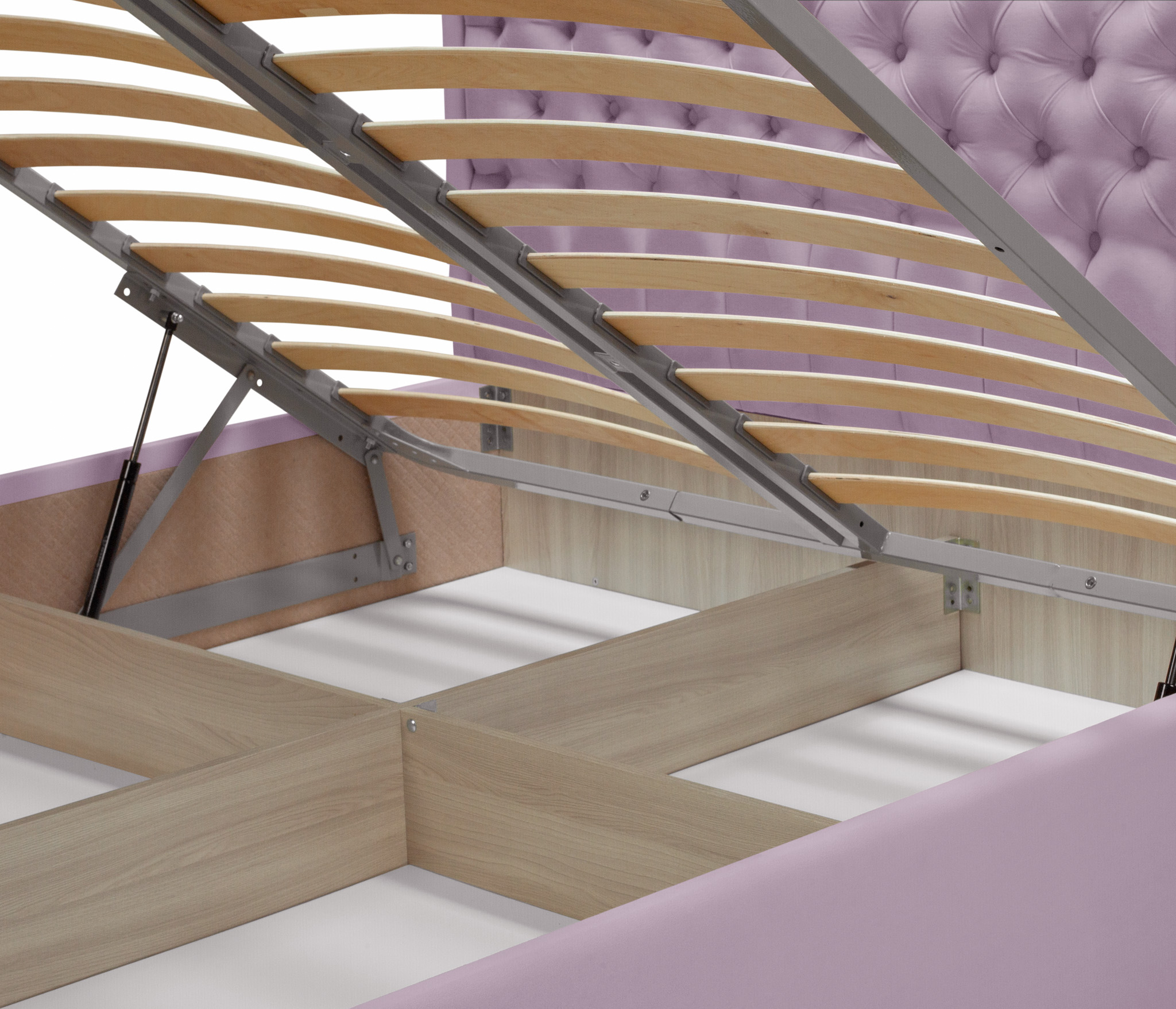 Подъемный механизм позволяет вам без труда поднять спальное место и получить доступ к большому ящику для хранения.