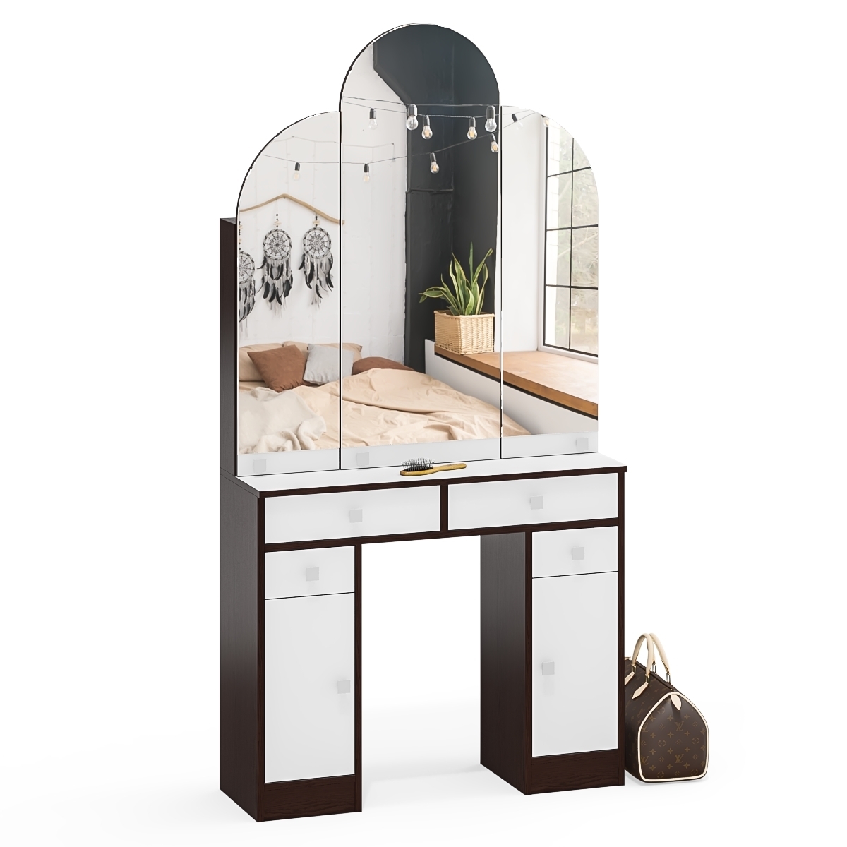 Туалетный столик Трельяж МД №2 – это элегантное и функциональное решение, которое гармонично впишется как в интерьер спальни, так и прихожей, предлагая удобное место для хранения и ухода за собой.