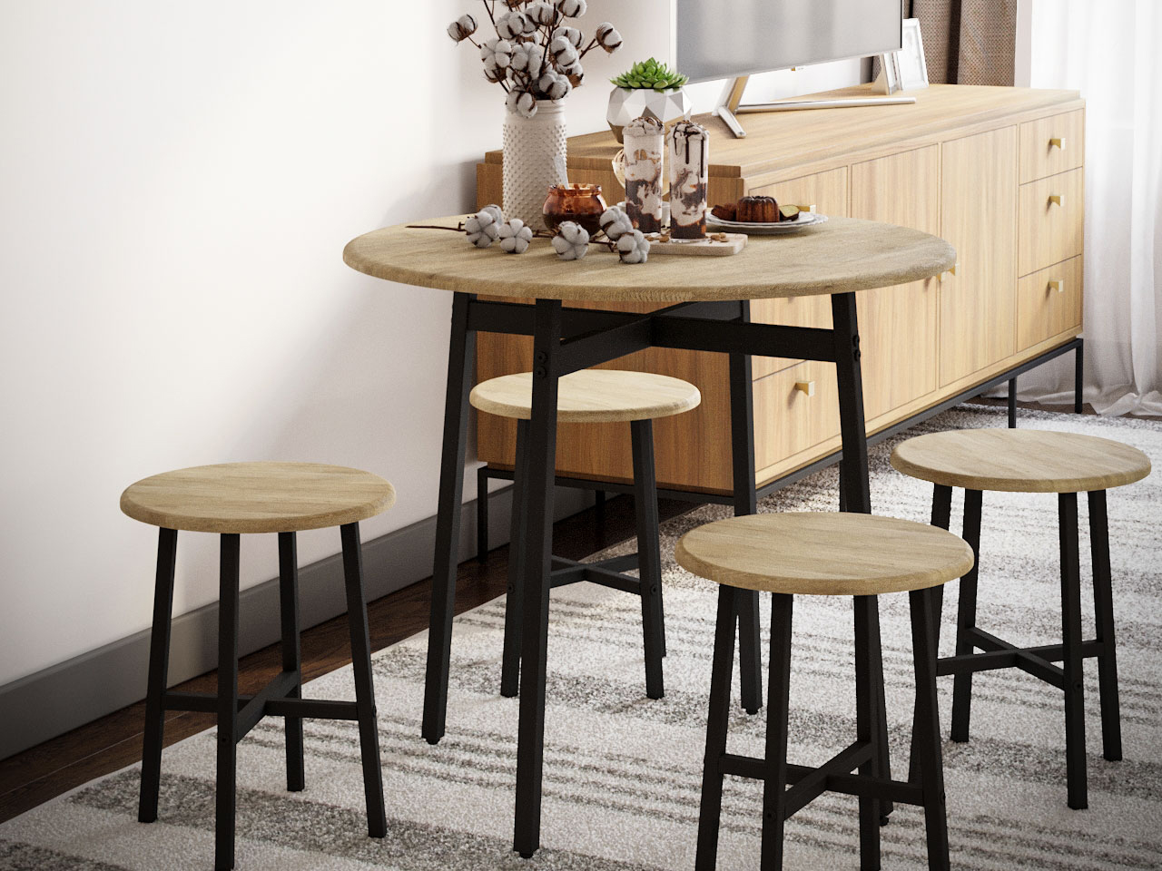 В тандеме с металлическими ножками стол прослужит долгие годы, а круглая столешница обеспечит безопасную обстановку в помещении.
