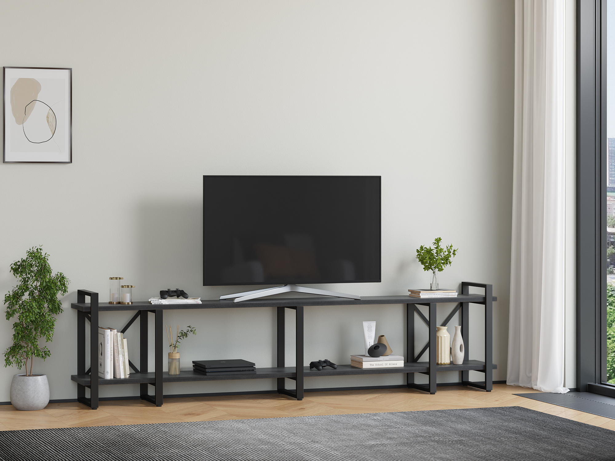 Тумба под ТВ Айсберг Лофт 240 черный (Cеверное дерево темное)