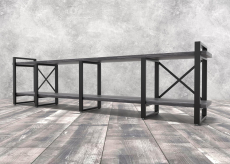 Тумба под ТВ Айсберг 240 в стиле лофт от Фабрики мебели 4 Сезона. Металлический каркас выполнен из металлического профиля 20х40 мм покрытого порошковой краской. Полки из ЛДСП 26 мм. Благодаря перекрестиям расположенным с задней части изделия конструкция надежная и без проблем выдержит нагрузку до 100 кг. Ножки имеют пластиковые опоры, регулируемые по высоте.