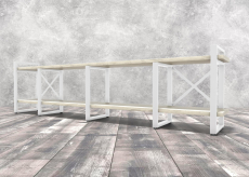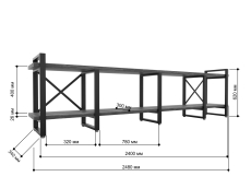 Тумба под ТВ Айсберг 240 в стиле лофт от Фабрики мебели 4 Сезона. Металлический каркас выполнен из металлического профиля 20х40 мм покрытого порошковой краской. Полки из ЛДСП 26 мм. Благодаря перекрестиям расположенным с задней части изделия конструкция надежная и без проблем выдержит нагрузку до 100 кг. Ножки имеют пластиковые опоры, регулируемые по высоте.