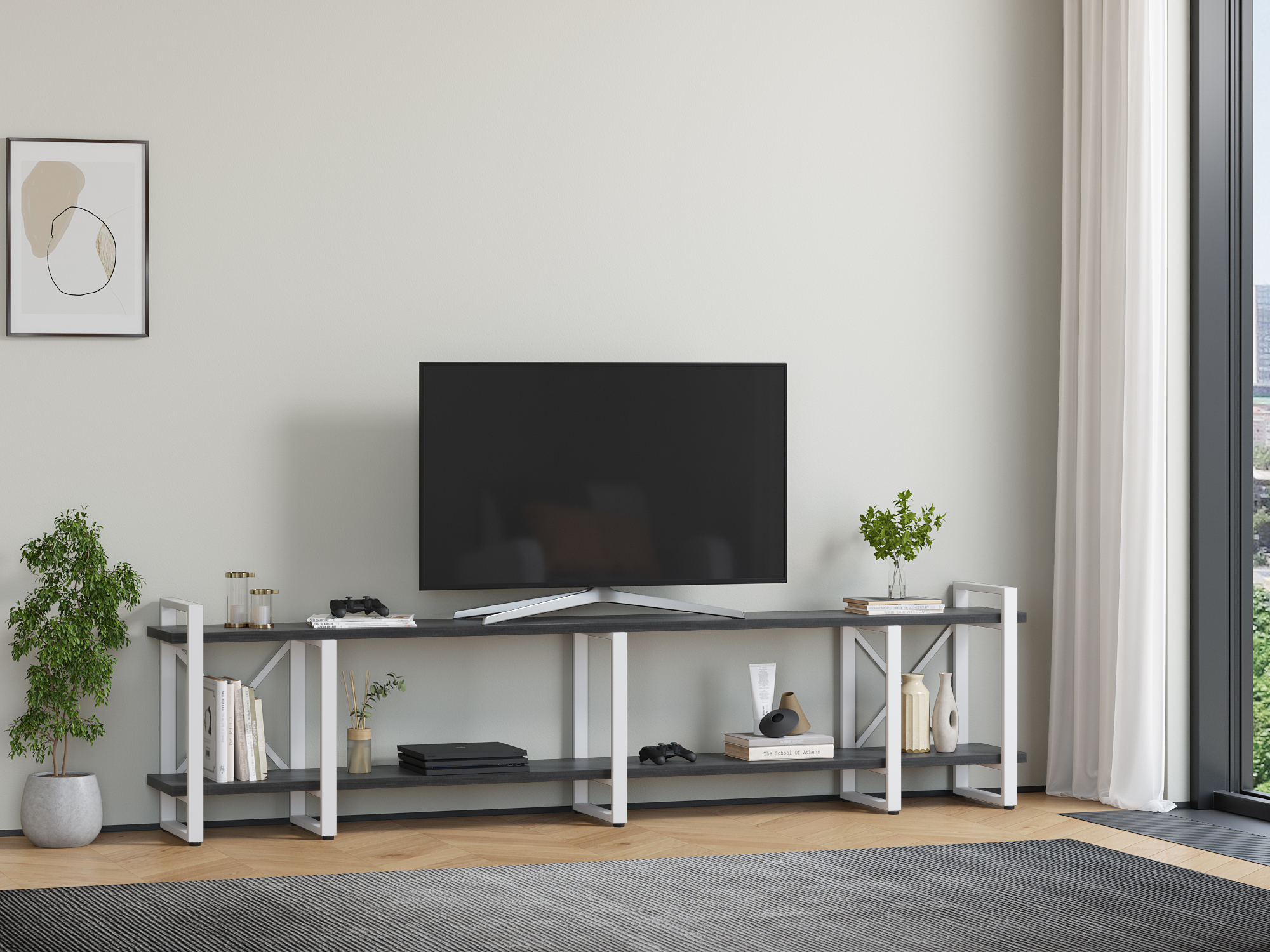 Тумба под ТВ Айсберг Лофт 240 белый (Cеверное дерево темное)