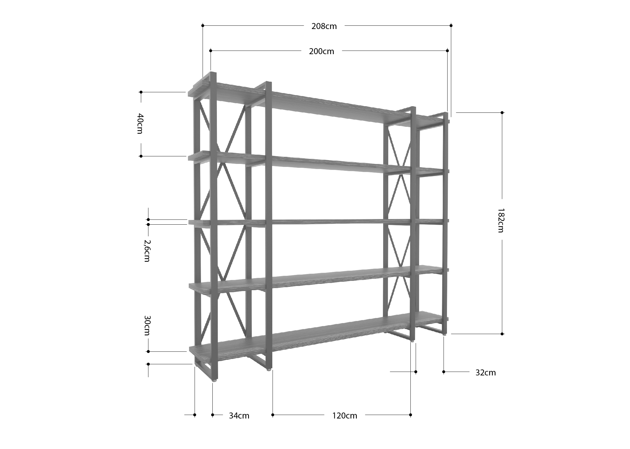 Стеллаж в стиле Лофт от Фабрики мебели 4 Сезона. Каркас выполнен из металлического профиля 40х20 мм, толщина стенки 1,5 мм, покрыт безопасной, не имеющей запахов порошковой краской. Полки ЛДСП 26 мм. Изделие имеет пластиковые опоры, регулируемые по высоте. Данные для отправки через транспортные компании: 6 Упаковок 1. 114,5х2х0,32 см 2. 182х35х8 см 3. 182х35х8 см 4. 208х30х7,8 см 5. 208х30х5,2 см 6. 48х30х7,8 см Вес - 72 кг. Объем - 0,2 м3.