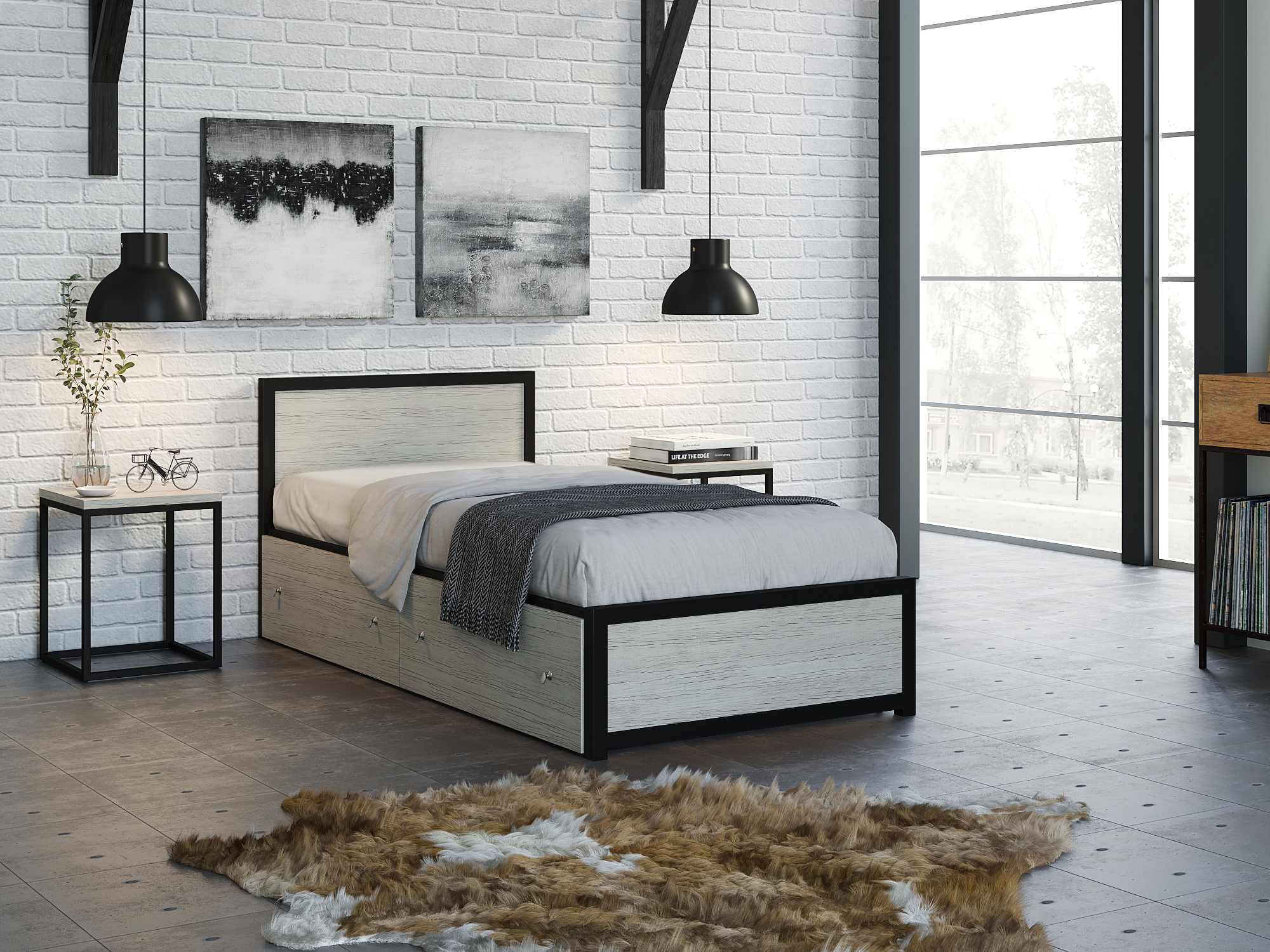 Кровать Титан Лофт 90 черный (Дуб крафт белый)