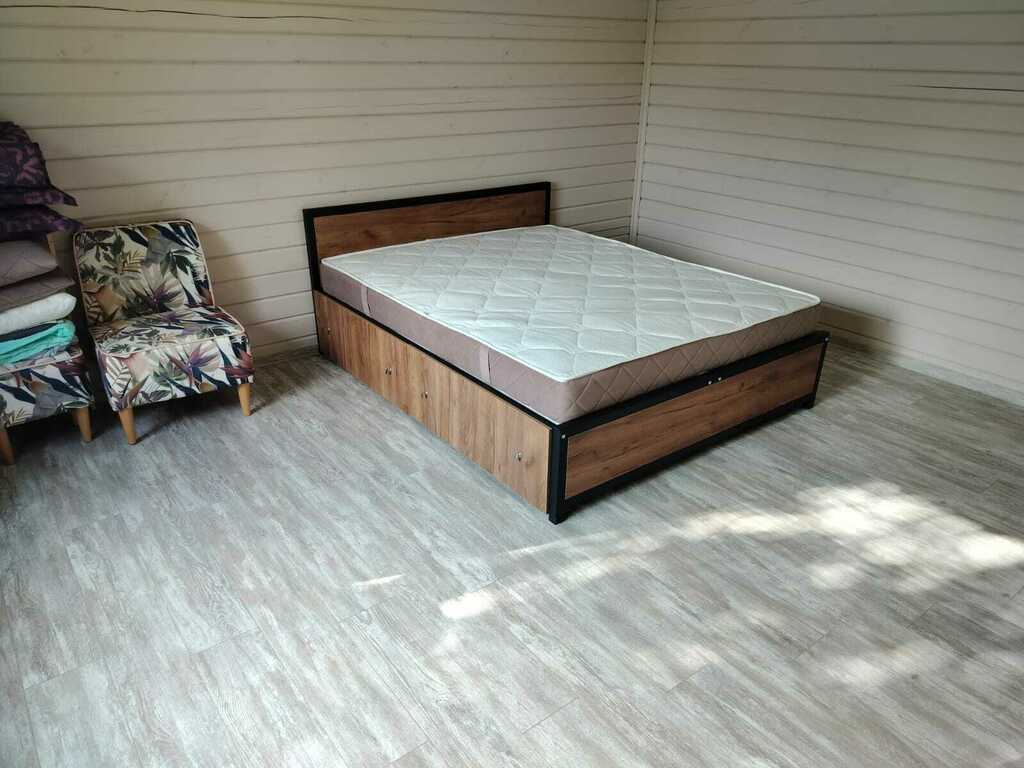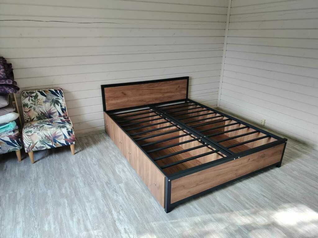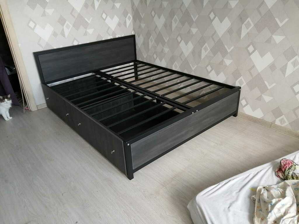 Кровать серии Титан Лофт. Каркас выполнени из прочного металла, покрашен порошковой краской, ящики и вставки сделаны из ЛДСП. Размер спального места 160х200 см. Максимальная нагрузка 400 кг.
