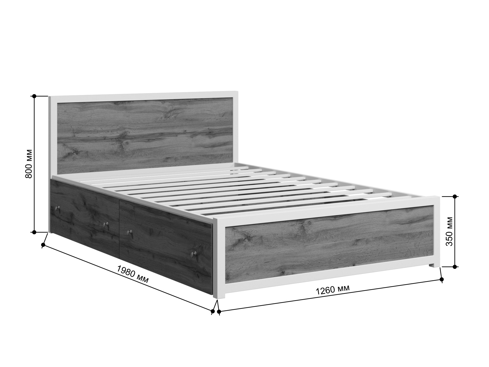 Кровать серии Титан Лофт. Каркас выполнени из прочного металла, покрашен порошковой краской, ящики и вставки сделаны из ЛДСП. Размер спального места 120х190 см. Максимальная нагрузка 200 кг.