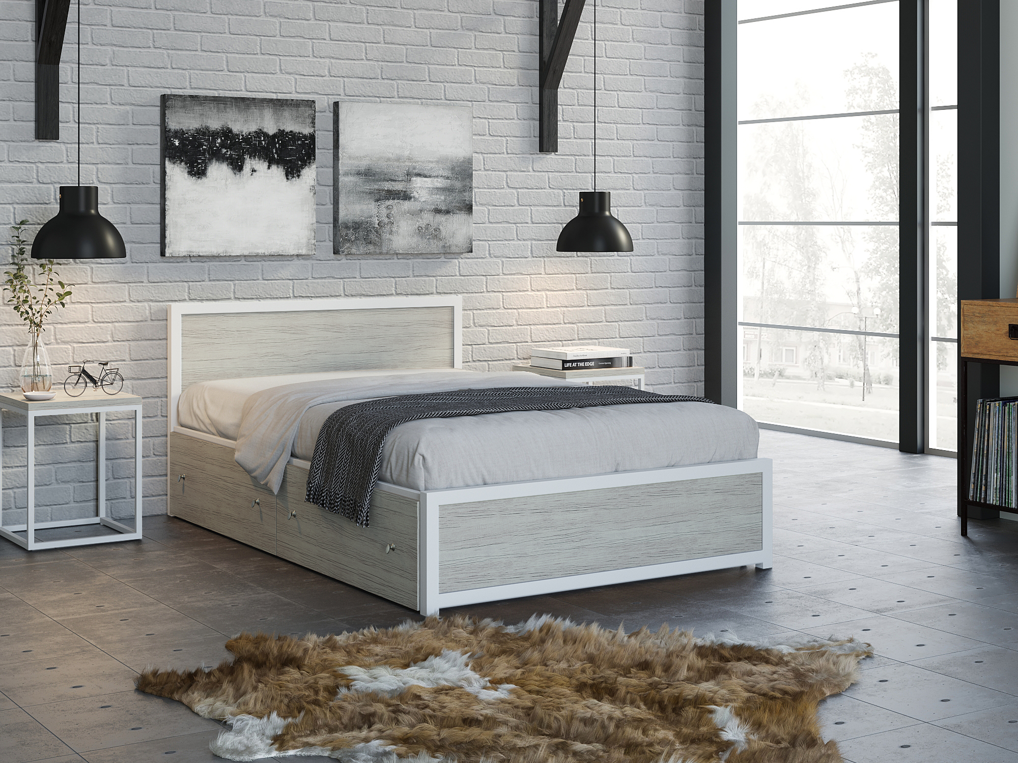 Кровать Титан Лофт 120 белый (Дуб крафт белый)