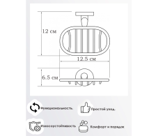 Мыльница решетчатая, подвесная. Гигиеничность, экономия места и удобство использования. Изделие монтируется к стене при помощи надежного крепежа. Не поддается коррозии, не деформируется и не отрывается от поверхности.