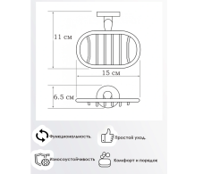 Мыльница решетчатая, подвесная. Гигиеничность, экономия места и удобство использования. Изделие монтируется к стене при помощи надежного крепежа. Не поддается коррозии, не деформируется и не отрывается от поверхности.