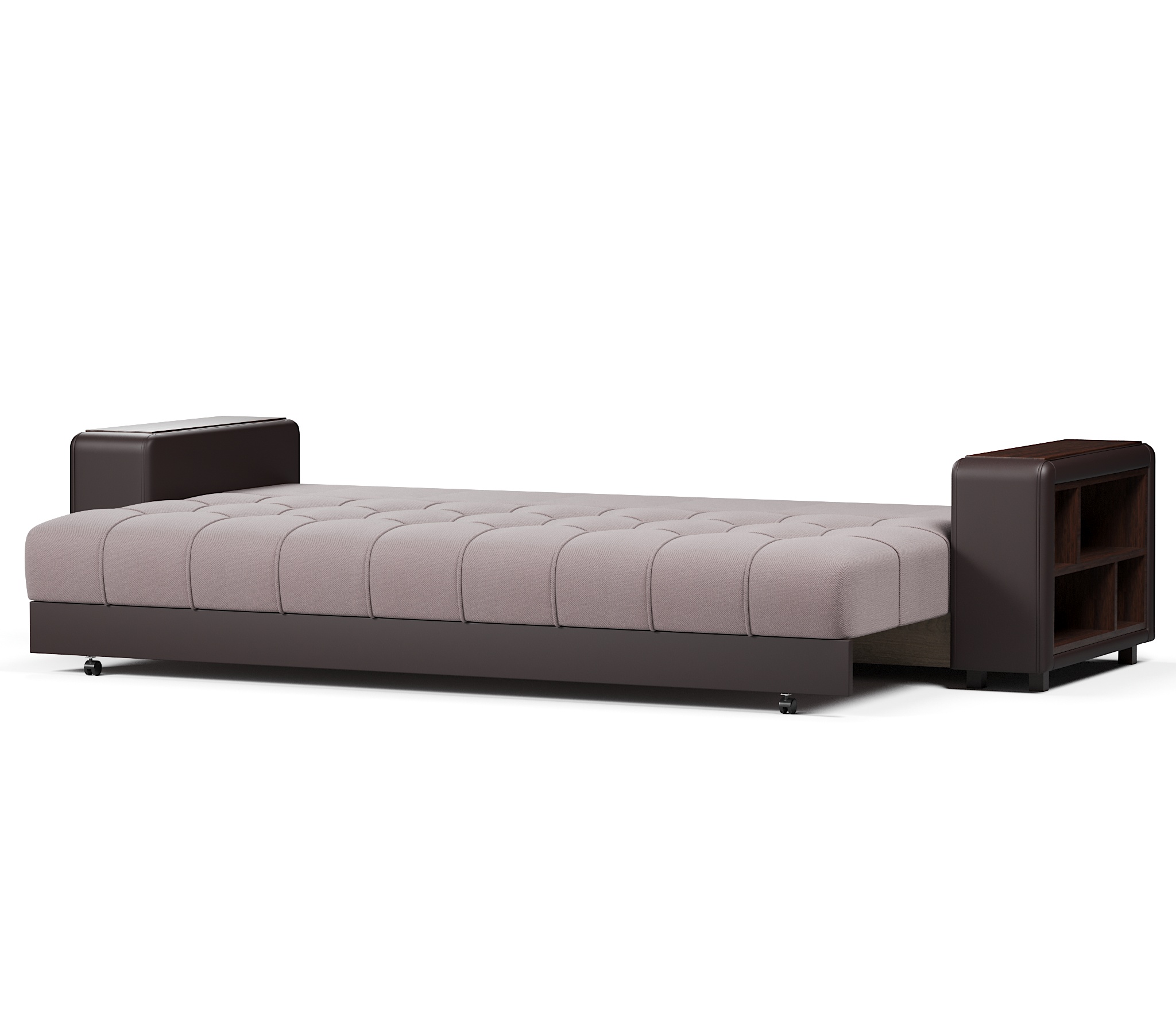 Прямой диван Дубай это отличный выбор для тех, кто планирует создать уют в своей квартире. Модель имеет выдержанный дизайн без элементов, которые перегружают её. С каждой стороны в подлокотниках установлены полки, куда вы сможете складывать различные мелочи, пульт итд.