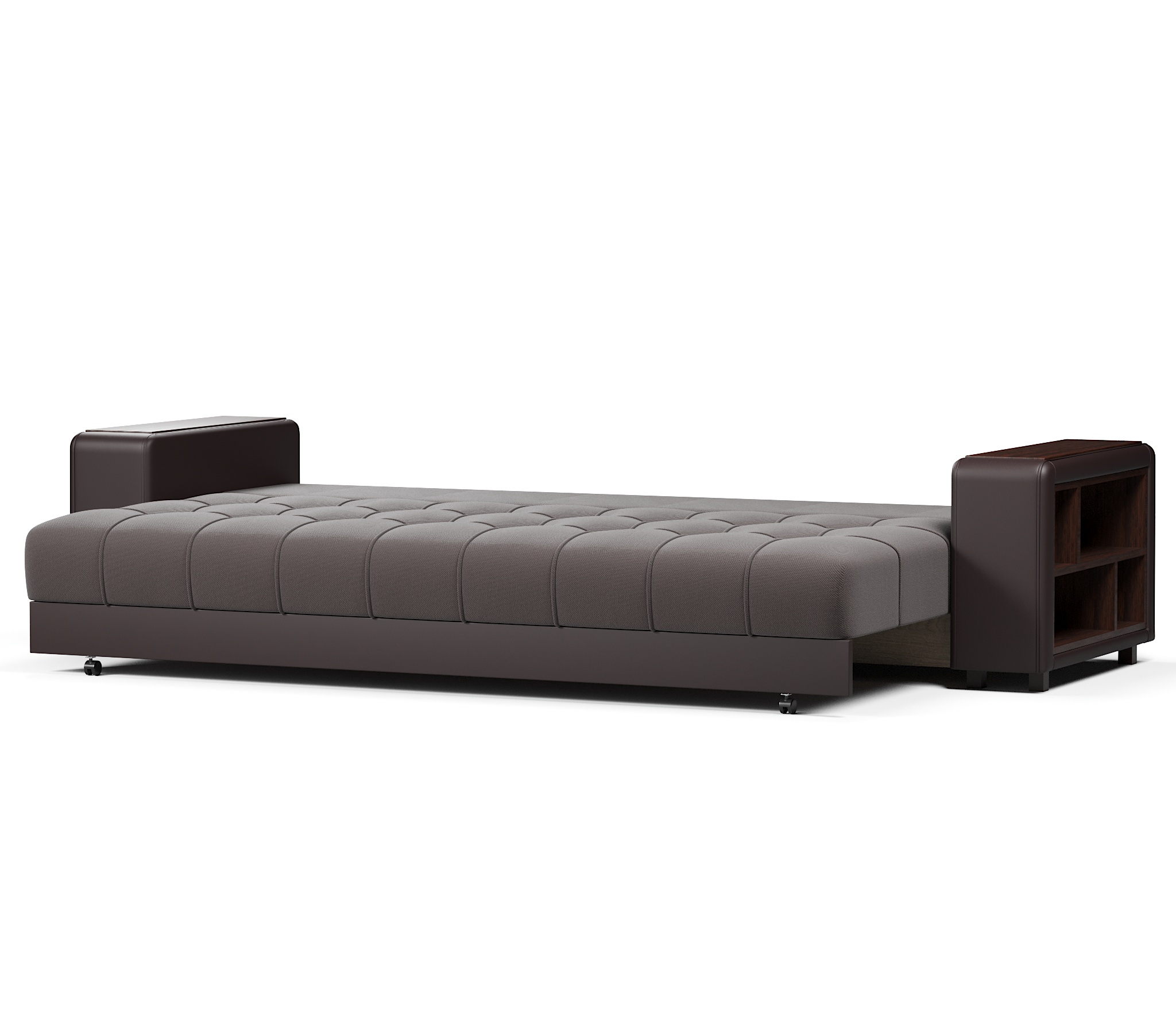 Прямой диван Дубай это отличный выбор для тех, кто планирует создать уют в своей квартире. Модель имеет выдержанный дизайн без элементов, которые перегружают её. С каждой стороны в подлокотниках установлены полки, куда вы сможете складывать различные мелочи, пульт итд.