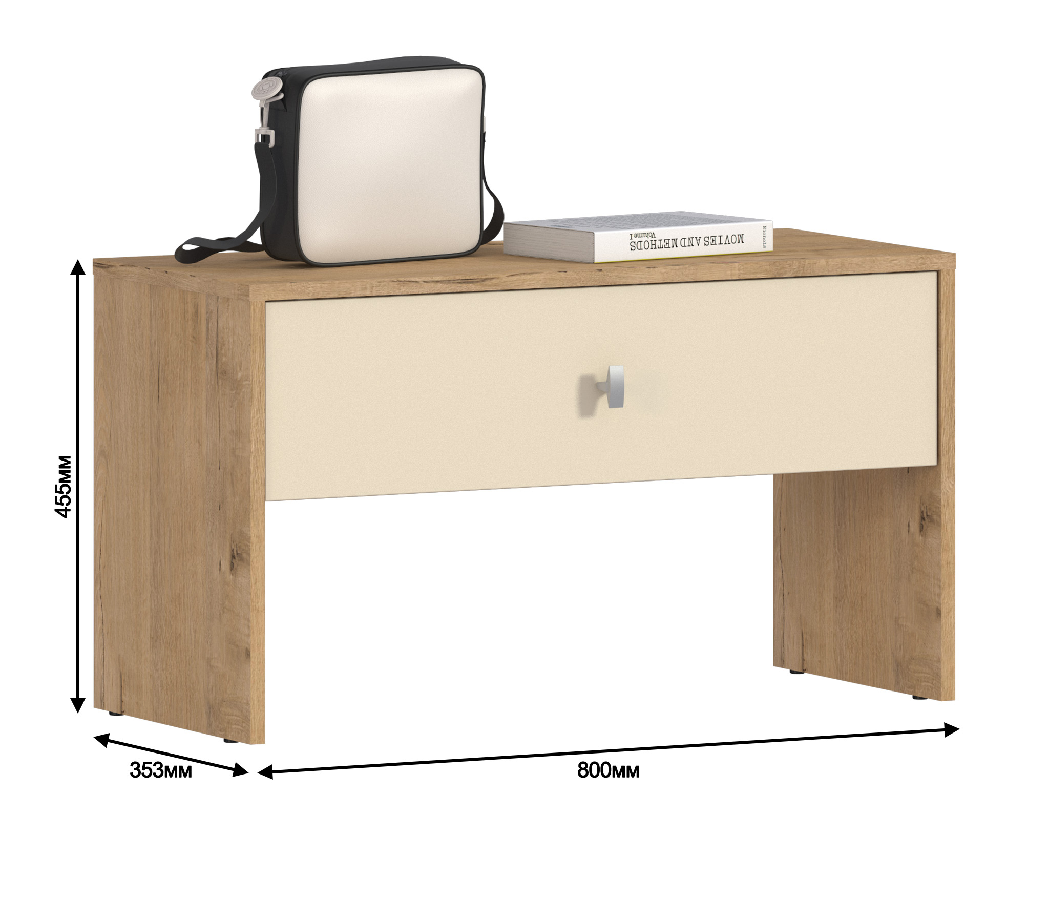 Из минусов фурнитура. Крепление для ящика хлипкое, ручка совсем дешевая пластмассовая. Ручку заменили.