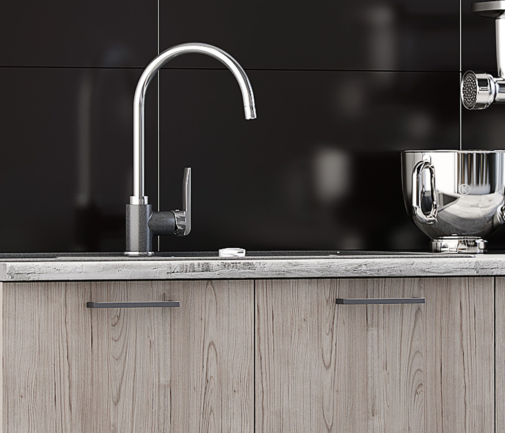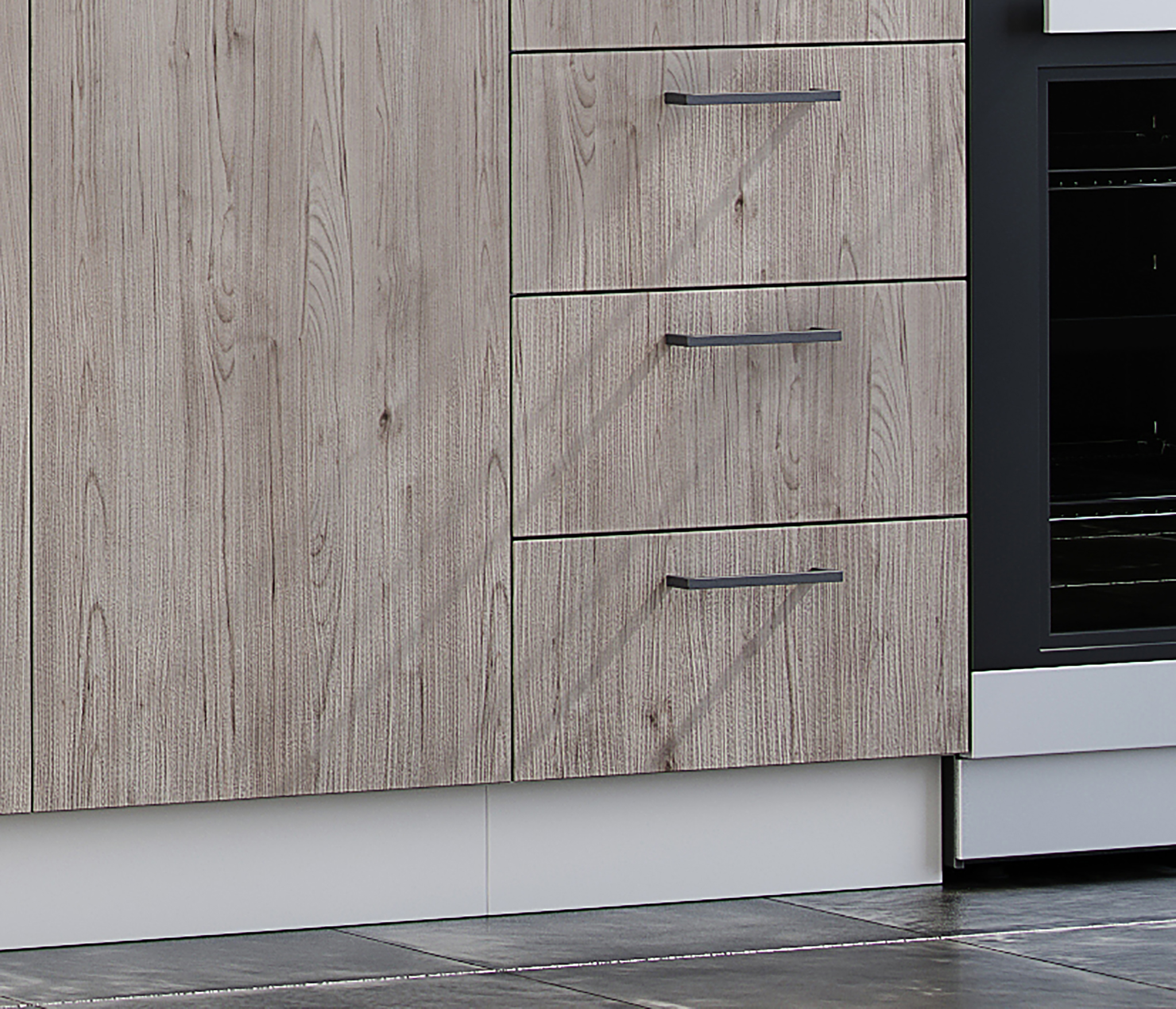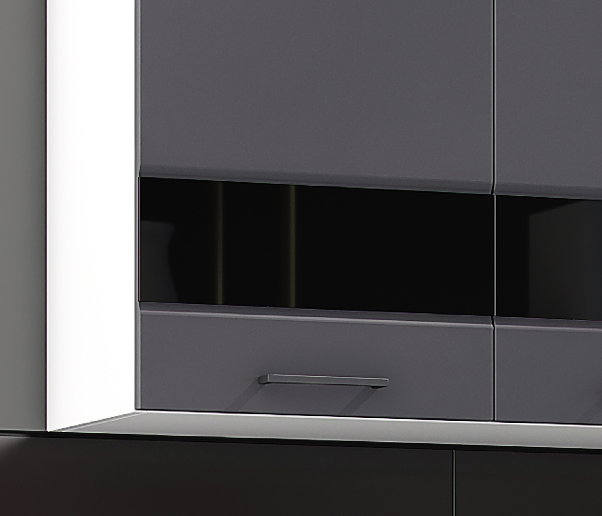 Цвет: верх фасадов - Графит софт, низ фасадов - Дуб Галиано, цвет корпуса - Белый.