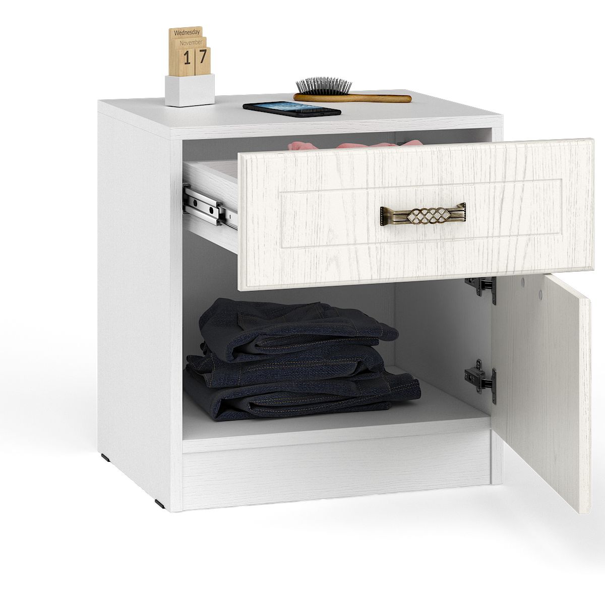 Тумба ящик и дверка Ливерпуль 08.146 ясень ваниль/белый - модный стиль и универсальная функциональность. Выдвижной ящик на шариковые направляющих и вместительное распашное отделение тумбы Ливерпуль 08.146 - удобное хранение 1000 мелочей! Лицевая фурнитура мебели Ливерпуль - дизайнерские металлические ручки с имитацией под старую бронзу. Мебель Ливерпуль поставляется в разобранном виде, с комплектом фурнитуры, упакованная в 4-х слойный гофрокартон.