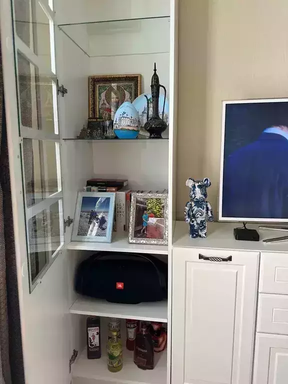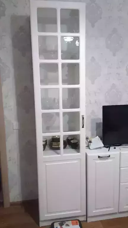 Пенал-витрина Ливерпуль ясень ваниль/белый - высокая планка хорошего вкуса!