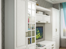 Ливерпуль Шкаф-пенал + карниз ясень ваниль/белый - компактность и эргономика системы хранения.