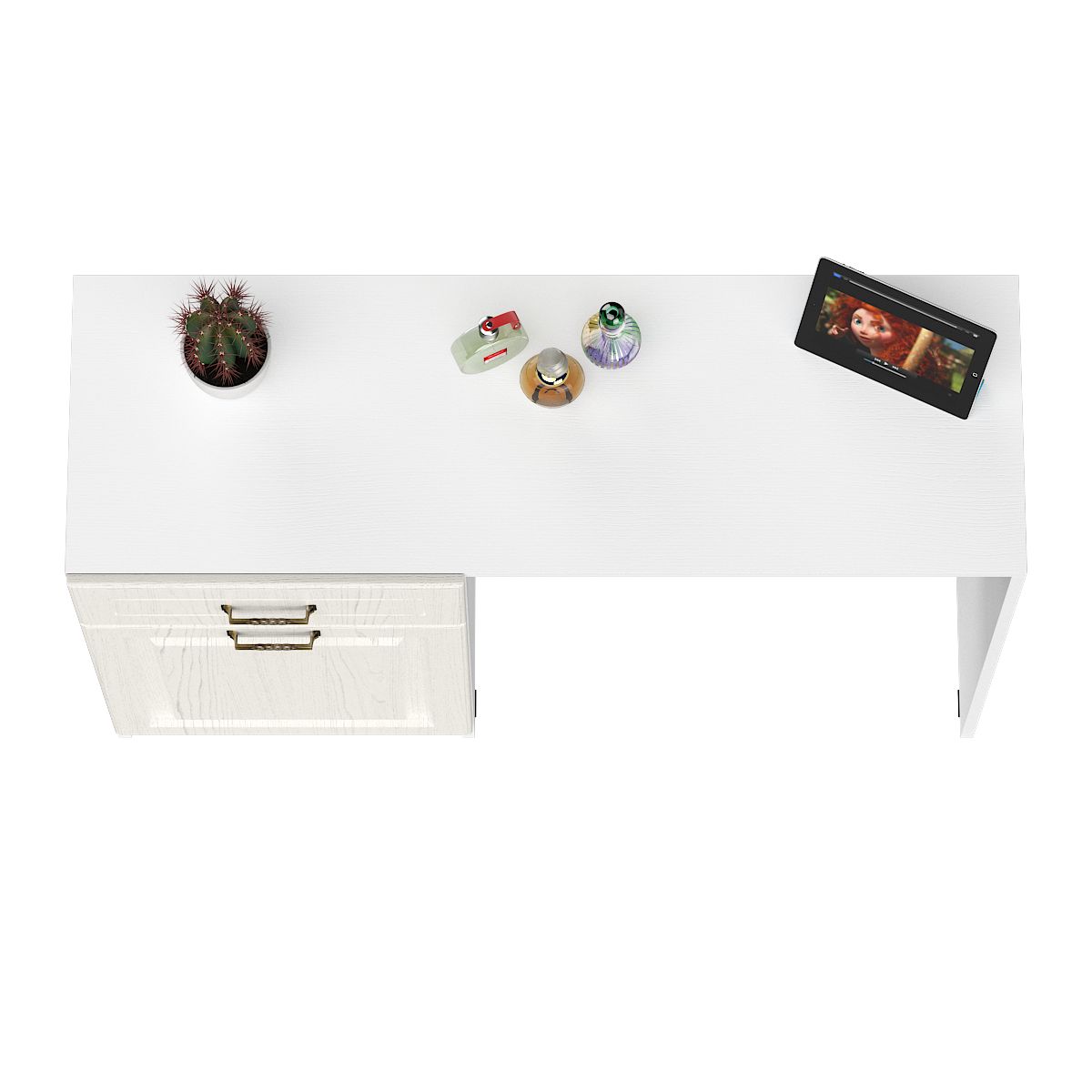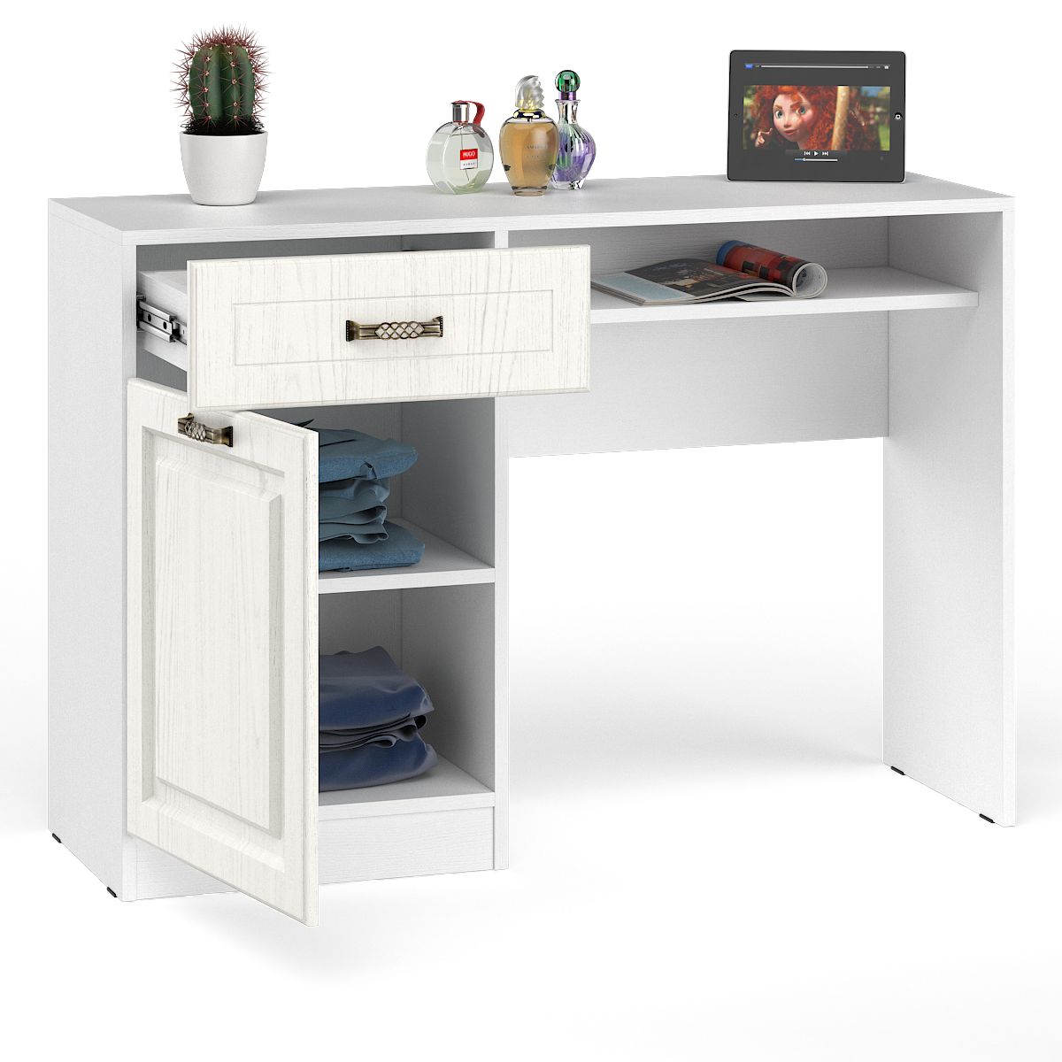 Стол туалетный 12.46 Ливерпуль ясень ваниль/белый - широкий, вместительный - раздолье для размещения косметического арсенала Прелестницы! Нарядный и эргономичный стол туалетный обладает практичной глубиной (всего 41 см.) и устойчив, благодаря тумбе, расположенной слева.