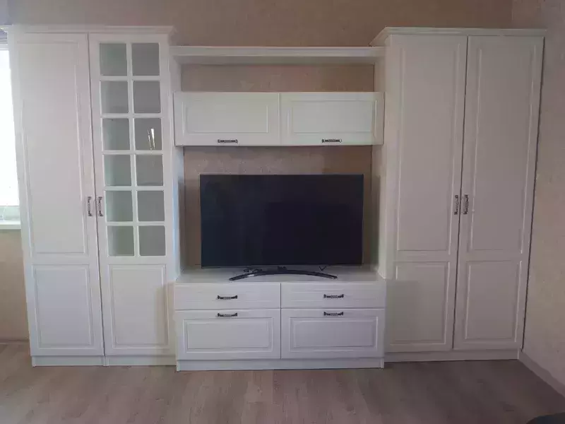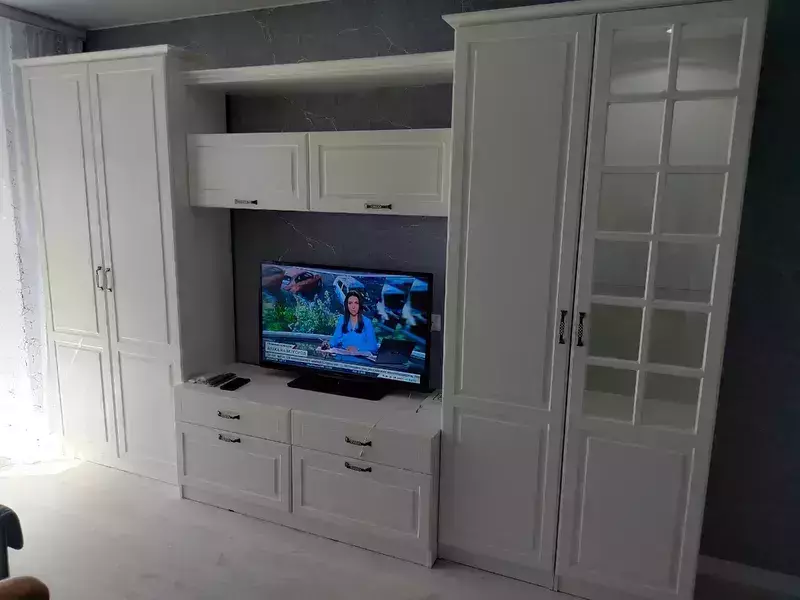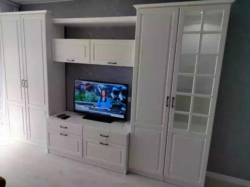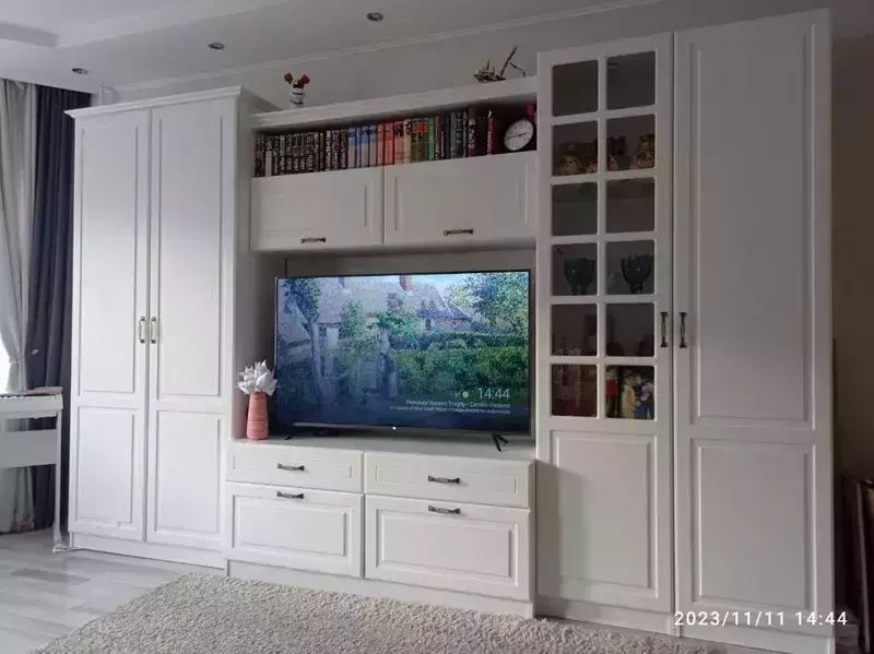 Набор мебели 4 Ливерпуль традиционная обстановка семейного гнезда, где в кругу родных приятно отдохнуть и раствориться в любви. Компактный набор, состоящий из тумбы, четырёх шкафов (навесного, пенала, витрины и для одежды) и полки - классика стиля.Тумба Ливерпуль обладает универсальной функциональностью - это и подставка для телевизора, и закрытая система хранения. Широкая тумба Ливерпуль имеет четыре выдвижных ящика на шариковые направляющих, верхние ящики - менее высокие. Элегантный шкаф навесной Ливерпуль оборудован двумя закрытыми отделениями без полок за откидными фасадами. Шкаф навесной Ливерпуль ценный особенной практичностью - удобным доступом к вещам и экономией полезной площади. Нарядный шкаф-пенал с четырьмя полками за распашной дверью - компактность и эргономика системы хранения. У каждого хозяина есть что «разложить по полочкам», укрыть от пыли, ультрафиолета и посторонних глаз - это как раз для шкафа-пенала! Изящный, распашной шкаф-витрина, с двумя стеклополками и двумя полки из ДСП, полностью готов отвечать за сервировку трапезы. Витринная часть шкафа-витрины Ливерпуль презентабельно разместит праздничную посуду, закрытая - припрячет столовый текстиль. В крышке шкафа-витрины Ливерпуль предусмотрен спот врезной - для акцентной подсветки фамильных сервизов и живописного декора. Нарядный шкаф для одежды - классический гардероб с оптимальным внутренним наполнением. Двустворчатый распашной шкаф для одежды Ливерпуль соединил традиционную практичность с модным внешним лоском. Шкаф имеет три секции - для белья с тремя полками, для одежды на вешалках со штангой и антресольную полку для головных уборов. Украшение шкафов фигурными карнизами - беспроигрышный дизайнерский ход! Два комплекта карнизов 1000 входят в набор 4. Комплекты из трёх изысканных карнизов (лицевой и два боковых) довершат эстетический образ модулей гостиной Ливерпуль. Карнизы крепятся к верхнему горизонту шкафов (витрины и для одежды), для повышения их «статуса» на мебельном Олимпе. Стильная, открытая полка Ливерпуль используется составе в гарнитура в качестве оригинального мостика между двумя шкафами. Дизайнерское назначение полки Ливерпуль - внесение в ансамбль визуальной лёгкости, живописных акцентов размещённого декора. Крепится полка Ливерпуль к боковинам соседних шкафов - витрины и для одежды, крепление к стене не предусмотрено. Очаровательный набор 4 для гостиной Ливерпуль выделяет удобную и вместительную нишу размером 140х49х90 см. для телевизора. Универсальная сборка набора мебели 4 Ливерпуль - ещё один шаг к комфорту и уюту Вашей гостиной. Набор мебели 4 Ливерпуль для тех, кто устал от минимализма и предпочитает обстановку в духе старины, с оттенком деревенского стиля. С самобытной мебелью Ливерпуль в Вашем доме поселится эстетика прошлого - незабываемый колорит уютного и практичного кантри. Нежность пастели мебели, винтажные нотки «состаренного дерева», эксклюзивные ручки - тайна прелести дизайна набора Ливерпуль. Сочетание в отделке мебели цвета «ясень» с выразительным рисунком темных прожилок, имитирует объёмность и фактуру крашеного массива. Ливерпуль Набор мебели 4 - это просто, но с налётом шика и роскоши, функционально, но очень стильно, практично, но долговечно!
