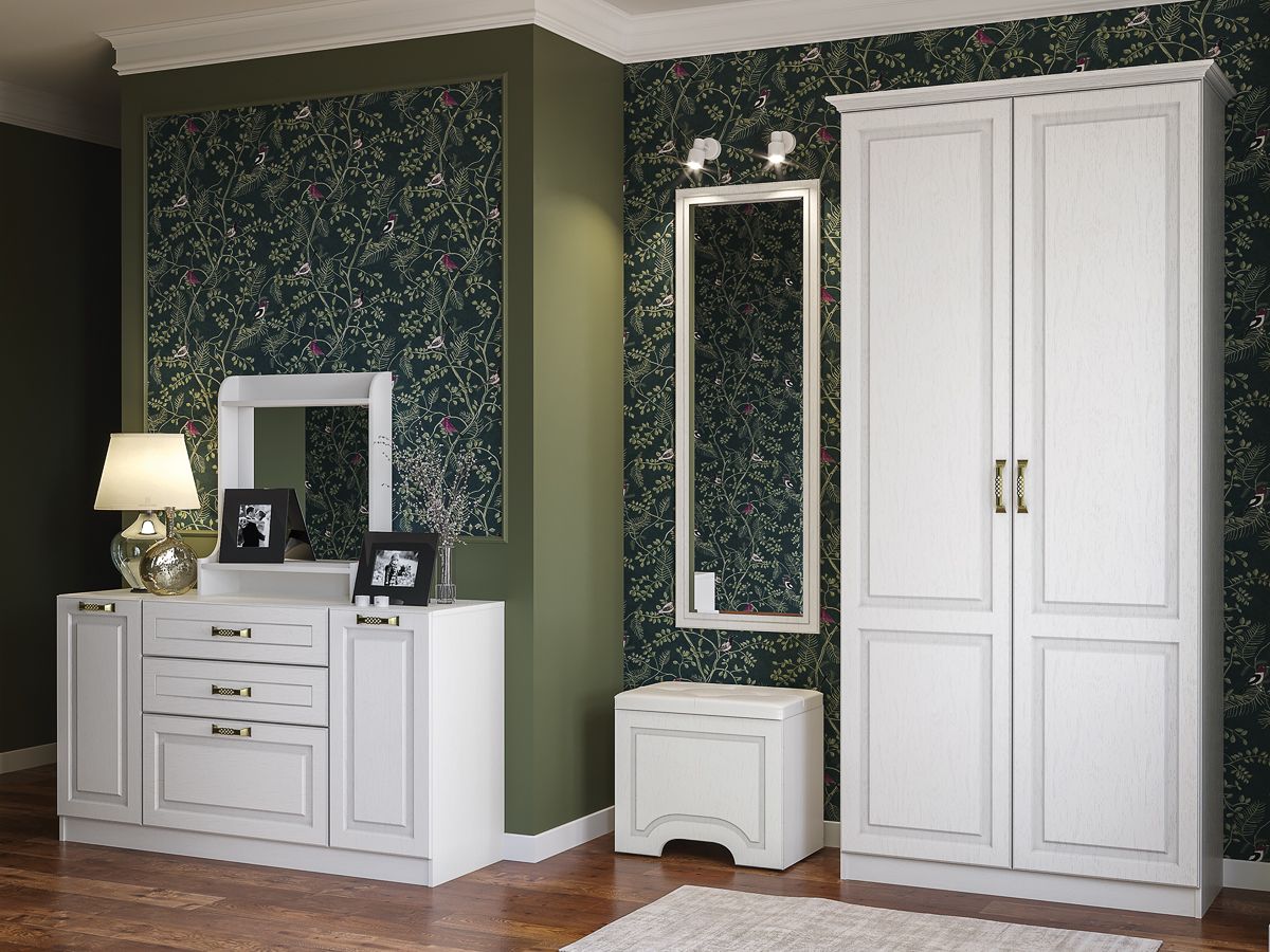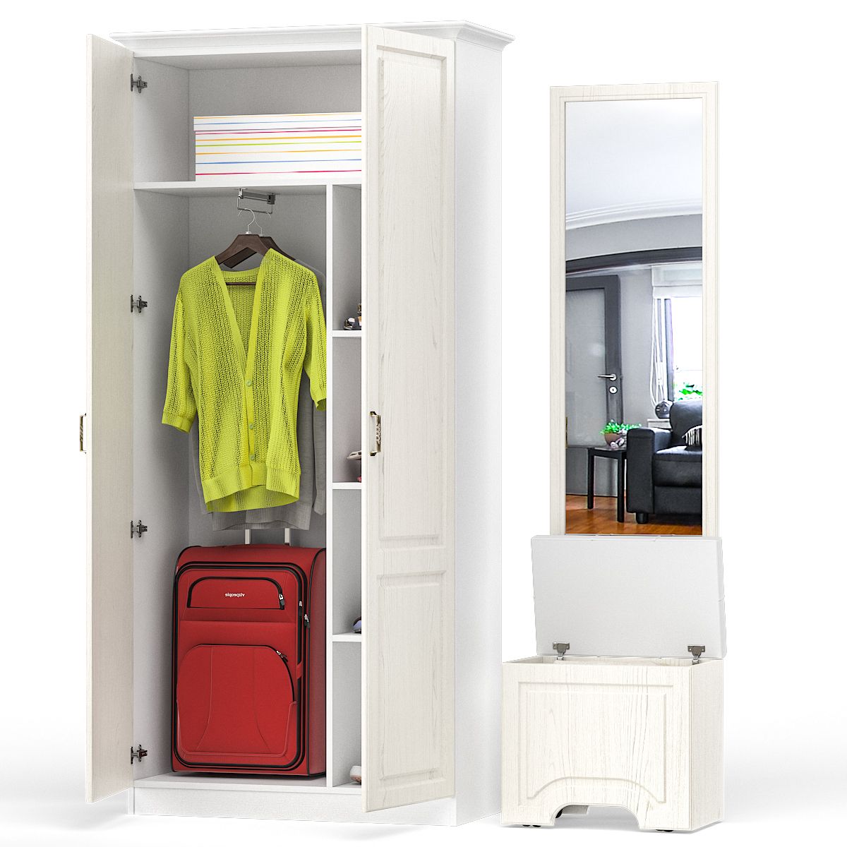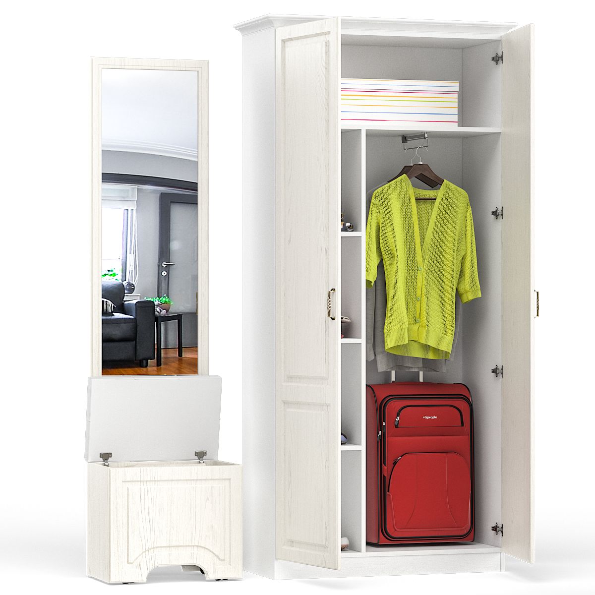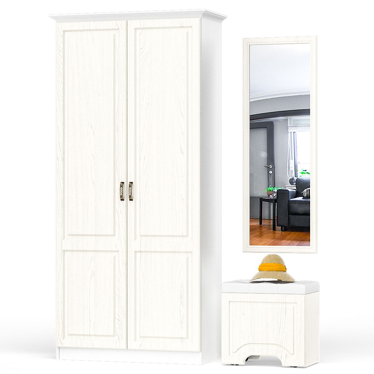Нарядная, компактная и удобная прихожая Ливерпуль № 3 поселит незабываемый колорит уютного и практичного стиля кантри в Вашем доме. Прихожая Ливерпуль № 3, включающая пуф с высоким зеркалом и шкаф для одежды с карнизом - минимум места и максимум услуг! Шкаф для одежды с карнизом Ливерпуль 13.134 - классический гардероб с оптимальным внутренним наполнением. Двустворчатый распашной шкаф для одежды Ливерпуль 13.134 соединил традиционную практичность с модным внешним лоском. Шкаф имеет три секции - для белья с тремя полками, для одежды на вешалках со штангой и антресольную полку для головных уборов. Элегантный комплект из трёх карнизов (лицевой и два боковых) довершает эстетический образ шкафа для одежды 13.134 Ливерпуль. Карнизы крепятся к верхнему горизонту шкафа для одежды 13.134, существенно повышая его «статус» на мебельном Олимпе. Роскошный пуфик с уютной крышкой с мягкой обивкой из белоснежной искусственной кожи, так и манит присесть отдохнуть! Эффектная обивка подъёмной крышки украшена «каретной» стяжкой, под крышкой - вместительное отделение для вещей. Небольшой вес пуфика позволяет с лёгкостью переместить пуф, переобуться, где Вам удобно, и возвратить на его «интерьерное» место! Зеркало навесное высокое Ливерпуль 03.242 - продемонстрирует Вашу элегантность, добавит эффектности и море света в интерьер! Рама зеркала Ливерпуль 03.242 украшена модной глубокой фрезеровкой, края зеркала красиво обработаны фацетом. Универсальная сборка прихожей Ливерпуль № 3 - ещё один шаг к комфорту и уюту даже в крошечной комнате. Нежность пастели мебели, винтажные нотки «состаренного дерева», эксклюзивные ручки - тайна прелести дизайна прихожей Ливерпуль. Сочетание в отделке мебели цвета «ясень» с выразительным рисунком темных прожилок, имитирует объёмность и фактуру крашеного массива. Прихожая Ливерпуль № 3 - это просто, но с налётом шика и роскоши, функционально, но очень стильно, практично, но долговечно!