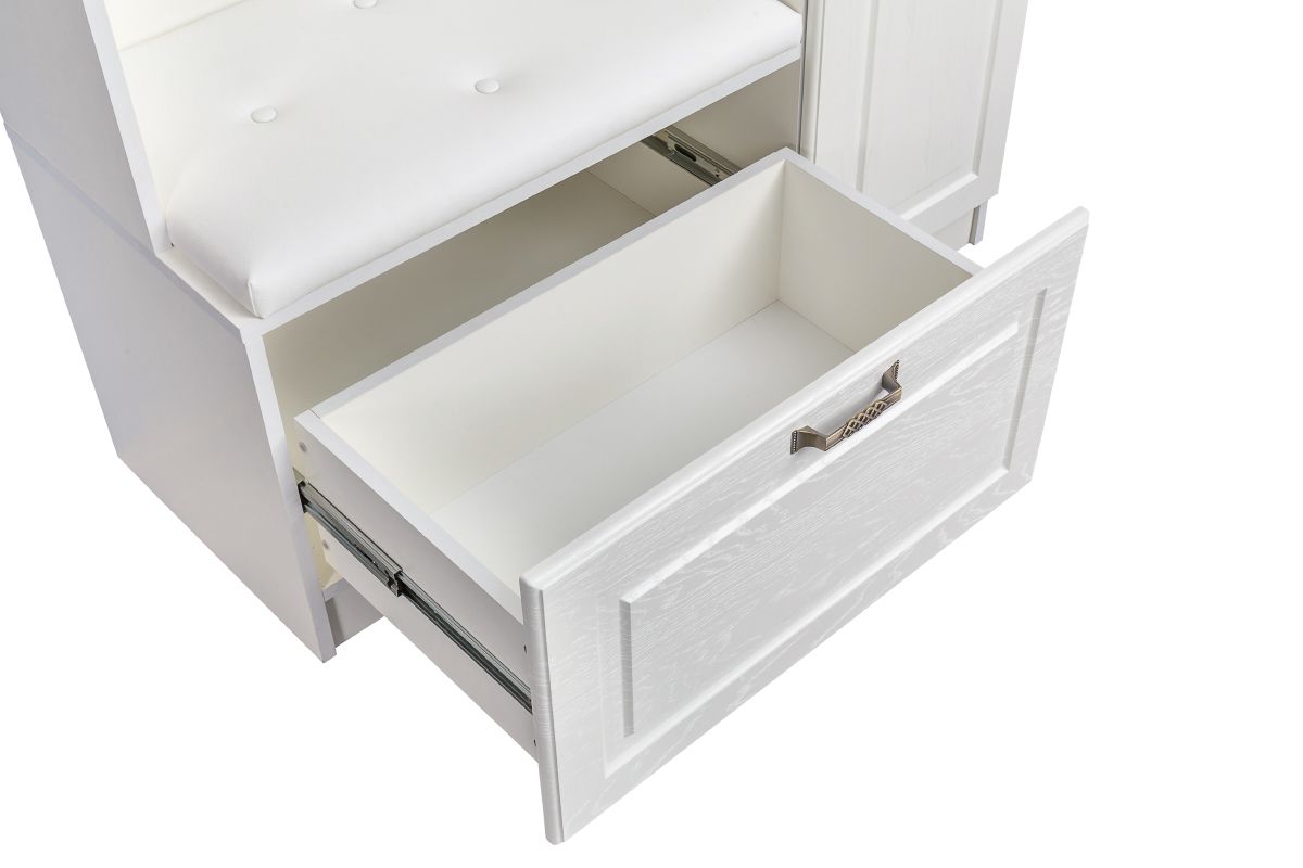 Нарядная прихожая 13.21 удобно комбинирует открытую вешалку с закрытой антресолью и выдвижным ящиком, с распашным шкафом-пеналом. Открытая вешалка с пятью пластиковыми крючками разместит сезонную одежду и аксессуары, антресоль с откидным фасадом - головные уборы. Выдвижной ящик прихожей 13.21 послужит Вам обувницей и банкеткой - крышка ящика облагорожена мягким сидением с каретной стяжкой. Распашной шкаф-пенал прихожей оборудован четырьмя полками для вещей. Прихожая 13.21 Ливерпуль собирается на любую сторону. Элегантный комплект из трёх карнизов (лицевой и два боковых) довершает эстетический образ прихожей Ливерпуль. Карнизы крепятся к верхнему горизонту прихожей, существенно повышая её «статус» на мебельном Олимпе. Корпуса мебели Ливерпуль выполнены из экологически чистой ламинированной ДСП 16 мм., фасады - МДФ с глубокой фрезеровкой. Распашные двери всех модулей серии Ливерпуль закреплены на четырёхшарнирных петлях, откидные фасады - на газовых лифтах. Выдвижные ящики мебели Ливерпуль установлены на шариковые направляющие, гарантирующие тишину и длительность эксплуатации. Лицевая фурнитура мебели Ливерпуль - дизайнерские металлические ручки с имитацией под старую бронзу. Мебель Ливерпуль поставляется в разобранном виде, с комплектом фурнитуры, упакованная в 4-х слойный гофрокартон.