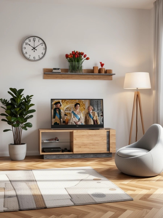 ТВ Тумба с полкой Арчи № 7 дуб крафт золотой/камень тёмный - идеальная пара мебели для практичной эстетики оформления гостиной.