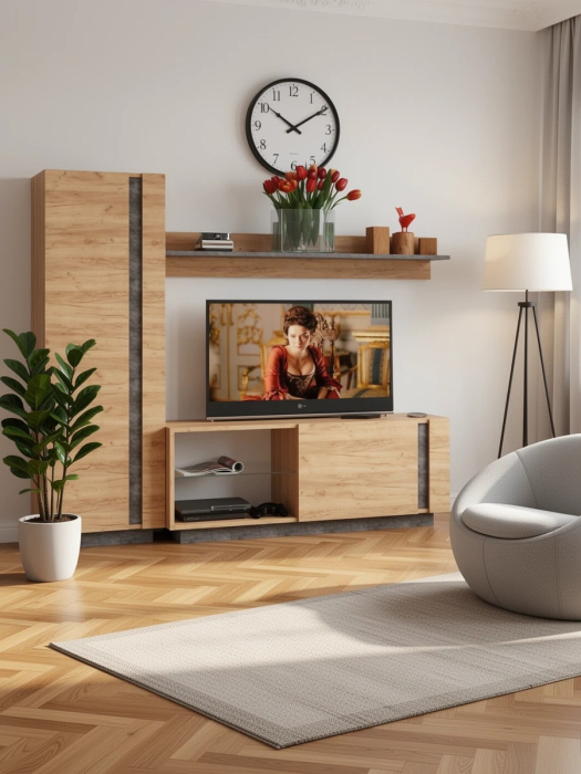 Арчи мебель в гостиную № 8 дуб крафт золотой/камень тёмный - идеальный набор для практичной эстетики оформления гостиной.