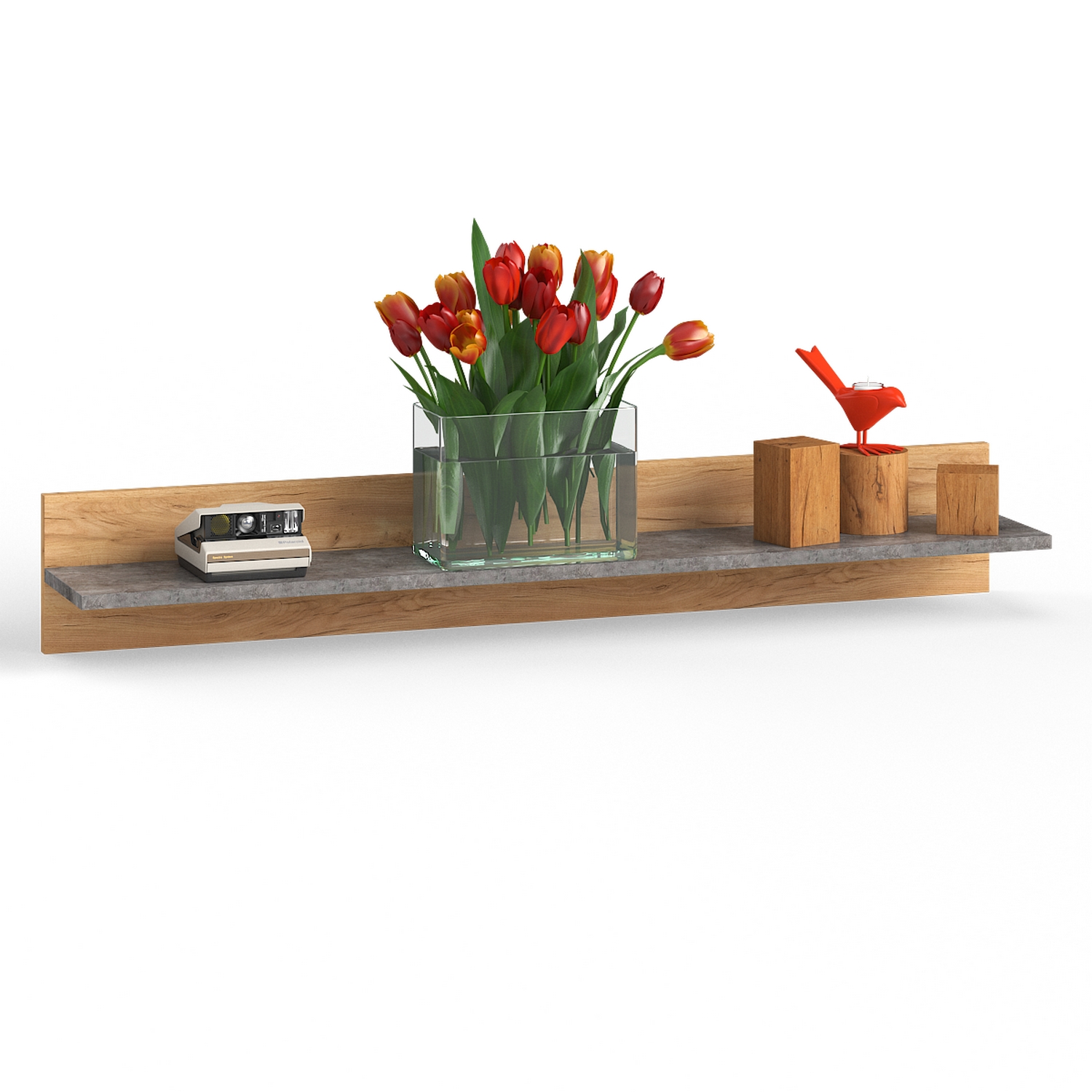 Полка Арчи 10.110 дуб крафт золотой/камень тёмный - открытая навесная полочка для книг и предметов декора станет неотъемлемой частью современного интерьера. Использовать полочку модно как в качестве единичного предмета мебели, так и в составе мебельных композиций. Полка Арчи 10.110 - модуль из набора мебели для гостиной Арчи.
