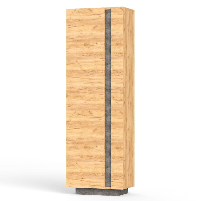 Шкаф комбинированный Арчи 10.05 дуб крафт золотой/камень тёмный - высокий узкий шкаф станет ярким мебельным акцентом в интерьере гостиной. За распашной дверкой шкафа расположены четыре полочки. Дверка открывается за край фасада. Универсальность модуля заключается в том, что при первой сборке Вы можете выбрать в какую сторону будет открываться дверка шкафа. Шкаф можно использовать как самостоятельную мебельную единицу или в составе мебельной композиции. Дизайн шкафа позволяет установить его на тумбу для телевизора, при этом цоколь шкафа не используется и высота шкафа меняется с 155 до 148 см. Шкаф комбинированный Арчи 10.05 - модуль из набора мебели для гостиной Арчи.