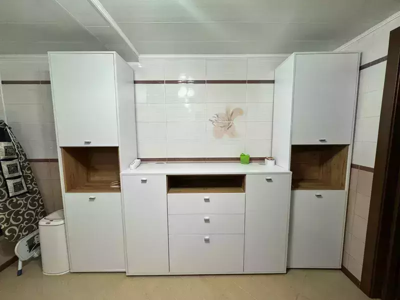 Декоративный стиль серии мебели Бэль таит нотки конструктивизма, позволяя реализовывать смелые идеи за счёт игры с пространством. Сочетание строгих, вертикальных и горизонтальных линий, и природная теплота элементов отделки, создают эффект визуальной динамики. Семь разноформатных модулей гостиной Бэль покоряют комфортностью и функциональностью, интригуют выразительным цветовым миксом. Шкаф навесной, пенал, две тумбы для аппаратуры, комод, полка и журнальный стол набора для гостиной Бэль смотрятся красиво и стильно. Белоснежная гостиная Бэль выглядит празднично, ассоциируется с чистотой, лёгкостью, свежестью и заряжает положительной энергетикой. Гостиная Бэль предлагает настоящие ценности - элегантное благородство дизайна, эргономику формы и превосходное качество материалов. Корпуса и фасады мебели Бэль выполнены из экологически чистой ламинированной ДСП 16 мм., лицевая фурнитура - ABS пластик, цвет сатин. Современная фурнитура, использованная в производстве гостиной Бэль, отличается высокой надёжностью и долговечностью. Распашные двери всех модулей гостиной Бэль на четырёхшарнирных петлях, выдвижные ящики-фолдинги на шариковых направляющих. Мебель гостиной Бэль поставляется в разобранном виде, с комплектом фурнитуры, упакованная в 4-х слойный гофрокартон.