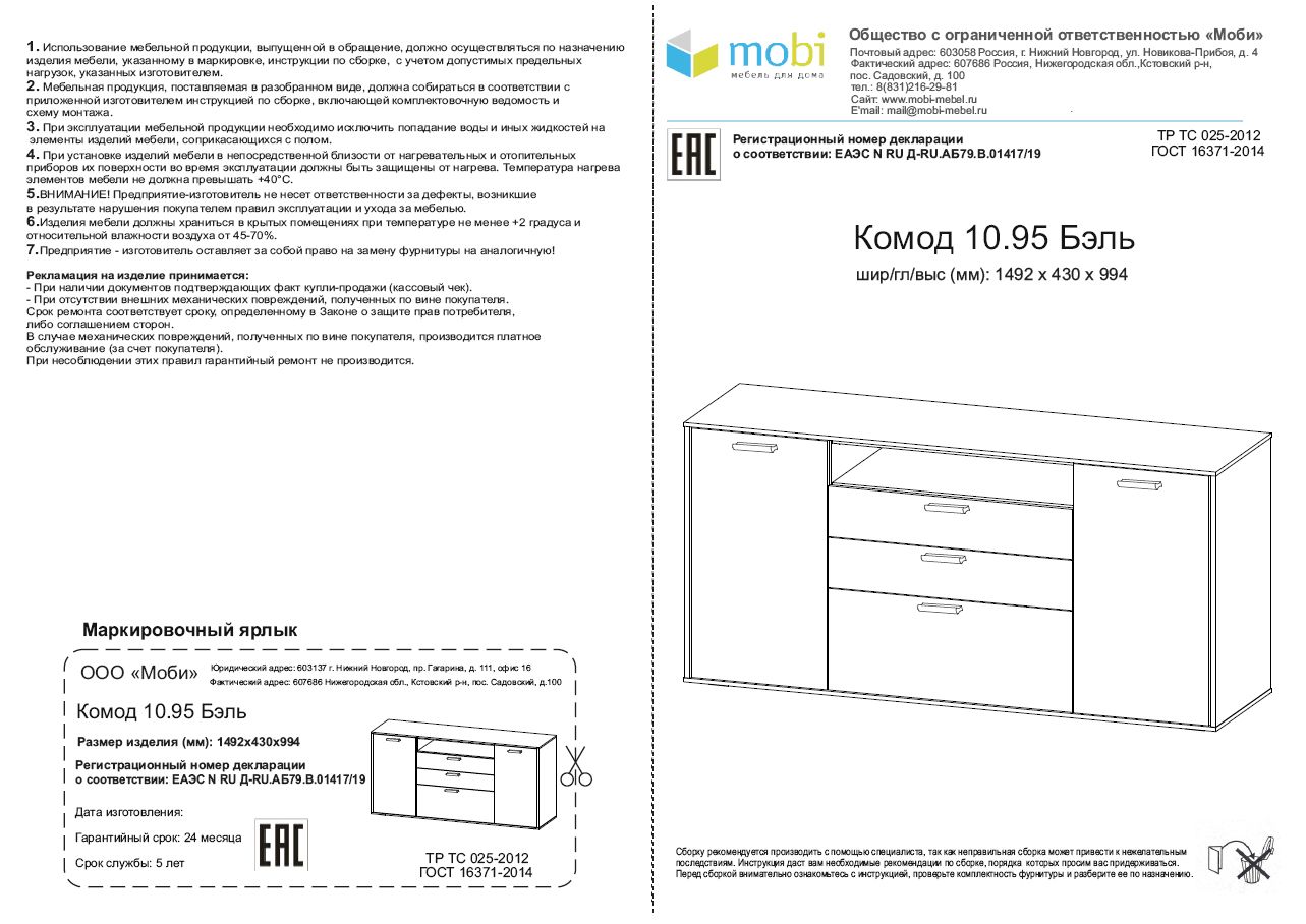 Габариты комода (ШхГхВ): 149х43х99 см.