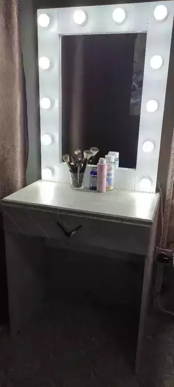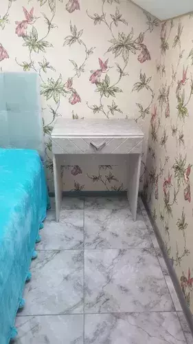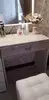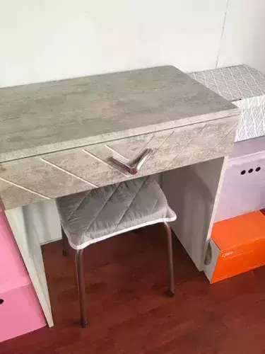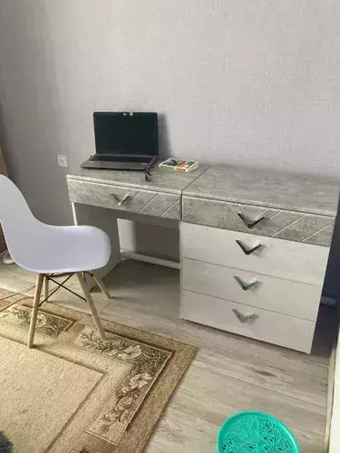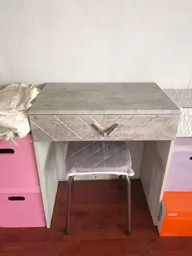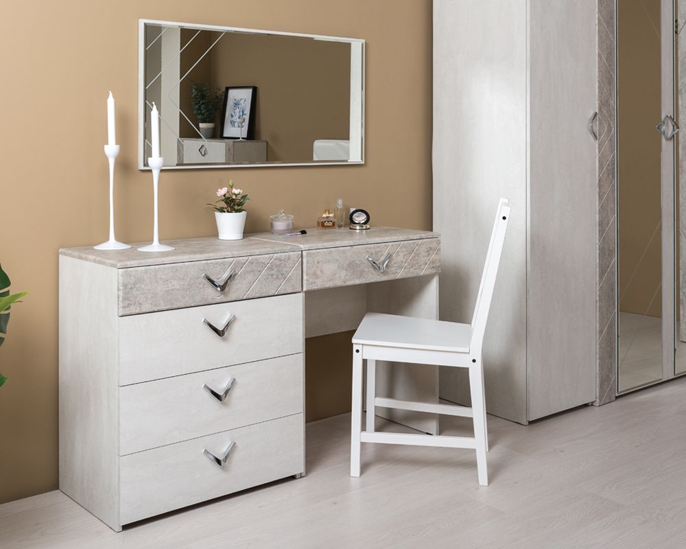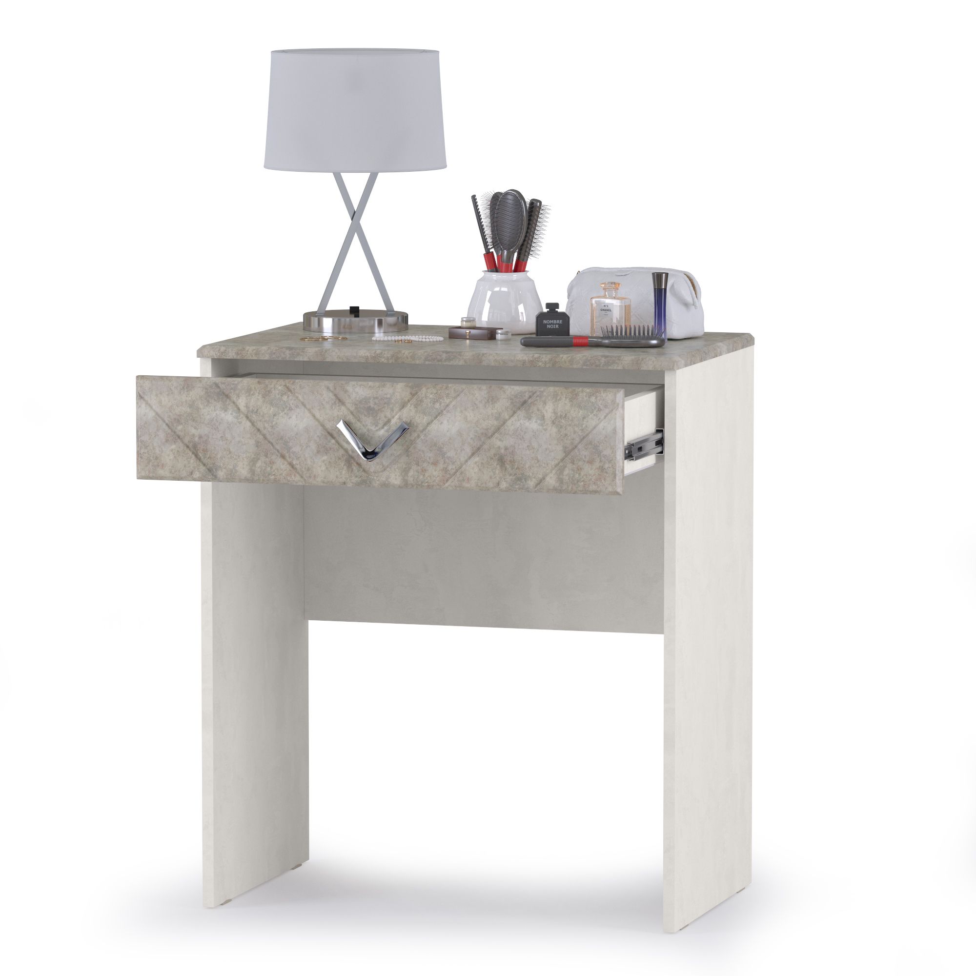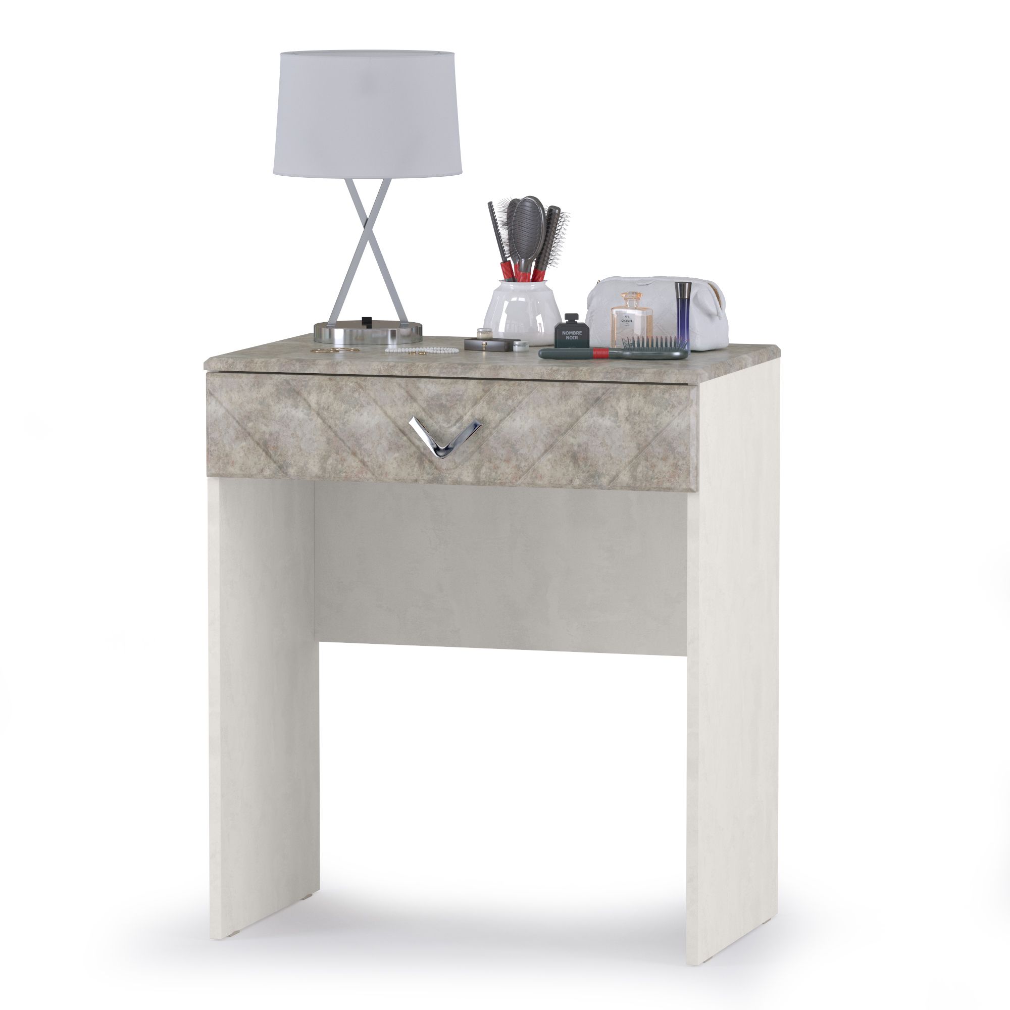 Стол туалетный Амели 12.48 шёлковый камень/бетон чикаго беж - лично для милых Дам! Маленькому столику туалетному Амели 12.48 с удобным выдвижным ящиком достаточно немного места, чтобы организовать уголок Красоты. Стол туалетный Амели 12.48 - элемент из набора мебели для спальни Амели Моби.