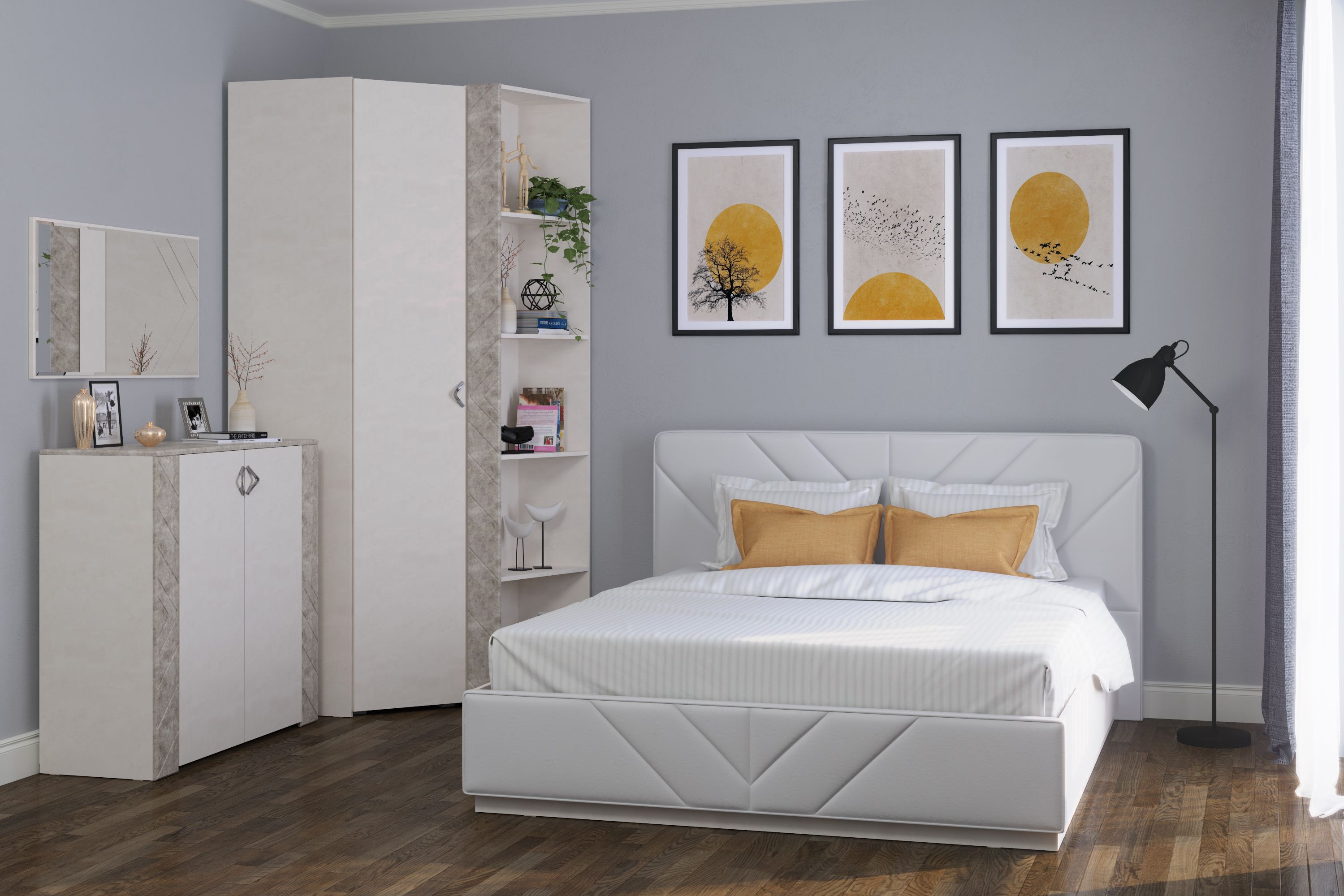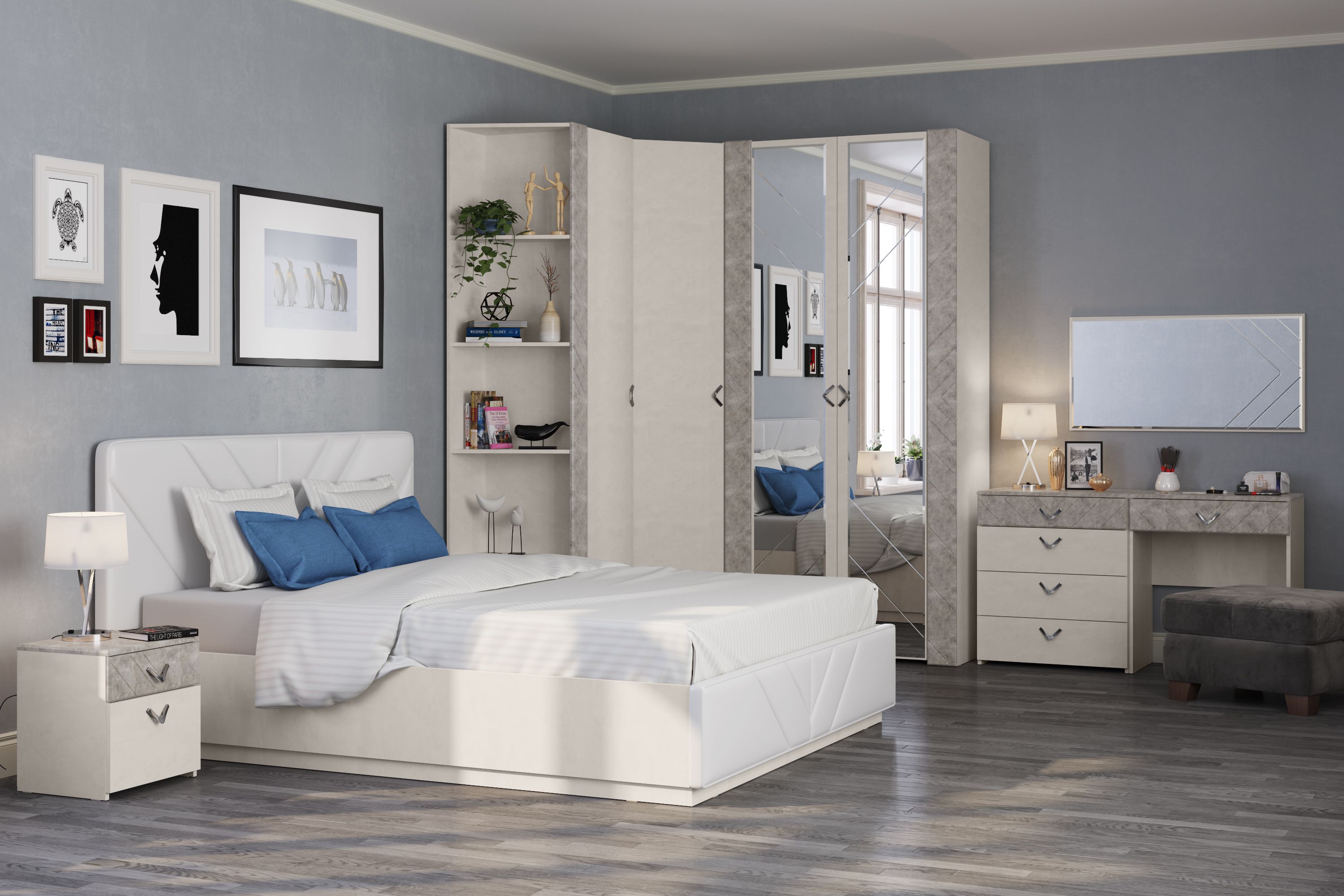 Спальня Амели - благодатный уголок царства Морфея! Комфортно оформить самые личные покои Вашего дома поможет спальня Амели - стильно, с профессиональным знанием вопроса и недорого! Практичная эргономика модулей коллекции в созвучии с нарядной геометрией стиля арт-деко - совершенная эстетика спальни Амели Моби. Художественные тонкости дизайна спальни Амели - имитация рисунка камня и нежности шёлковой ткани, мягкая нега белоснежной обивки. Жемчужина спальни Амели - роскошная кровать с мягкими спинками, может комплектоваться ортопедическим и подъёмным основаниями. Достойное дополнение кровати - миниатюрная тумбочка, туалетный столик с зеркалом, два вида комода, шкафная группа из четырёх предметов. Строгая симметрия формы, чёткие линии, максимальная высота шкафов, фактурные вставки, эксклюзивные ручки - акценты стиля арт-деко. Фрезеровка на фасадах мебели, зеркалах и декоративная прострочка мягких элементов кровати выполнены в виде полосок и зигзагов. Коллекция мебели для спальни Амели поможет обустроить комфортное, стильное и статусное пространство для Вашей семьи. Мебель для спальни Амели выполнена из ламинированной ДСП 16 мм, класса эмиссии Е1, с МДФ вставками, торцы - ПВХ-кромка. Лицевая фурнитура мебели для спальни Амели - блестящие хромированные ручки с удобной ребристой поверхностью обратной стороны. Мягкая обивка изголовья и изножья кровати Амели - нежная на ощупь белая искусственная кожа, наполнитель - пенополиуретан. Распашные двери модулей спальни Амели на четырёхшарнирных петлях, выдвижные ящики на шариковых направляющих полного выдвижения. Поставляется мебель для спальни Амели в разобранном виде, упакованная в гофрокартон, с комплектом фурнитуры и инструкцией по сборке.