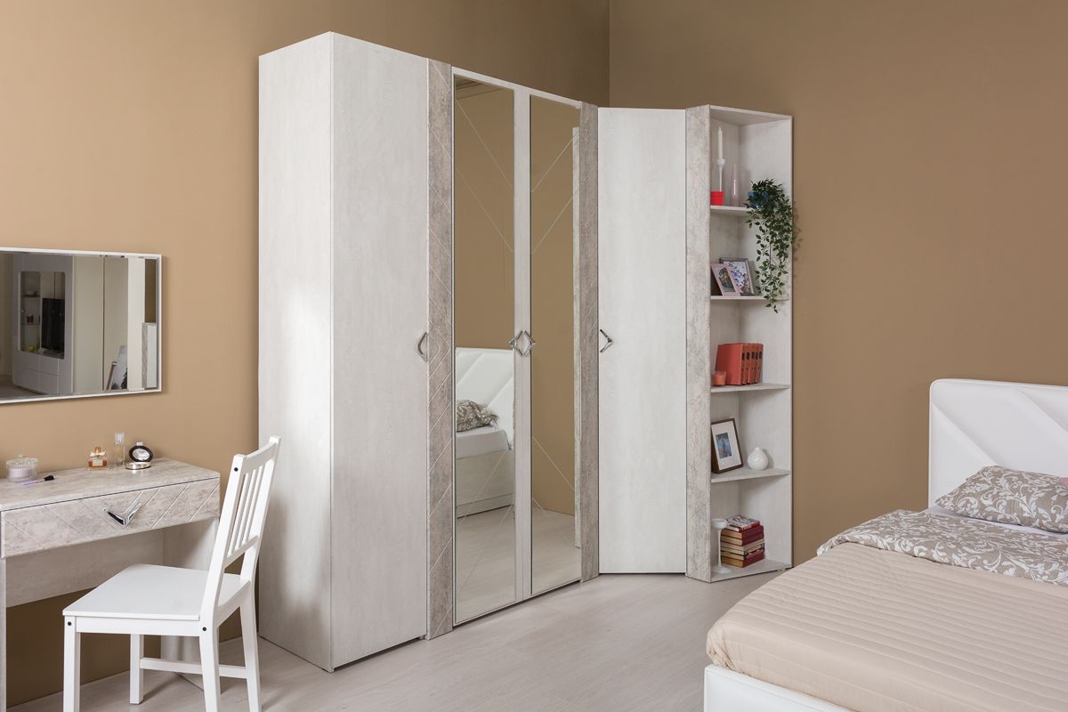 Угловой шкаф для одежды Амели 13.131 шёлковый камень/бетон чикаго беж - основа самых практичных шкафных композиций. Компактный, одностворчатый угловой шкаф Амели 13.131, за распашной дверью, оборудован пятью полками и штангой для вешалок. Универсальная сборка дверки углового шкафа для одежды Амели 13.131 увеличит варанты возможных дизайн-проектов. Угловой шкаф для одежды Амели 13.131 - элемент из набора мебели для спальни Амели Моби.