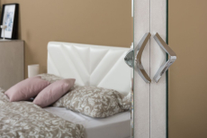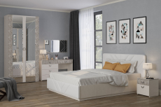 Спальня Амели - благодатный уголок царства Морфея! Комфортно оформить самые личные покои Вашего дома поможет спальня Амели - стильно, с профессиональным знанием вопроса и недорого! Практичная эргономика модулей коллекции в созвучии с нарядной геометрией стиля арт-деко - совершенная эстетика спальни Амели Моби. Художественные тонкости дизайна спальни Амели - имитация рисунка камня и нежности шёлковой ткани, мягкая нега белоснежной обивки. Жемчужина спальни Амели - роскошная кровать с мягкими спинками, может комплектоваться ортопедическим и подъёмным основаниями. Достойное дополнение кровати - миниатюрная тумбочка, туалетный столик с зеркалом, два вида комода, шкафная группа из четырёх предметов. Строгая симметрия формы, чёткие линии, максимальная высота шкафов, фактурные вставки, эксклюзивные ручки - акценты стиля арт-деко. Фрезеровка на фасадах мебели, зеркалах и декоративная прострочка мягких элементов кровати выполнены в виде полосок и зигзагов. Коллекция мебели для спальни Амели поможет обустроить комфортное, стильное и статусное пространство для Вашей семьи. Мебель для спальни Амели выполнена из ламинированной ДСП 16 мм, класса эмиссии Е1, с МДФ вставками, торцы - ПВХ-кромка. Лицевая фурнитура мебели для спальни Амели - блестящие хромированные ручки с удобной ребристой поверхностью обратной стороны. Мягкая обивка изголовья и изножья кровати Амели - нежная на ощупь белая искусственная кожа, наполнитель - пенополиуретан. Распашные двери модулей спальни Амели на четырёхшарнирных петлях, выдвижные ящики на шариковых направляющих полного выдвижения. Поставляется мебель для спальни Амели в разобранном виде, упакованная в гофрокартон, с комплектом фурнитуры и инструкцией по сборке.