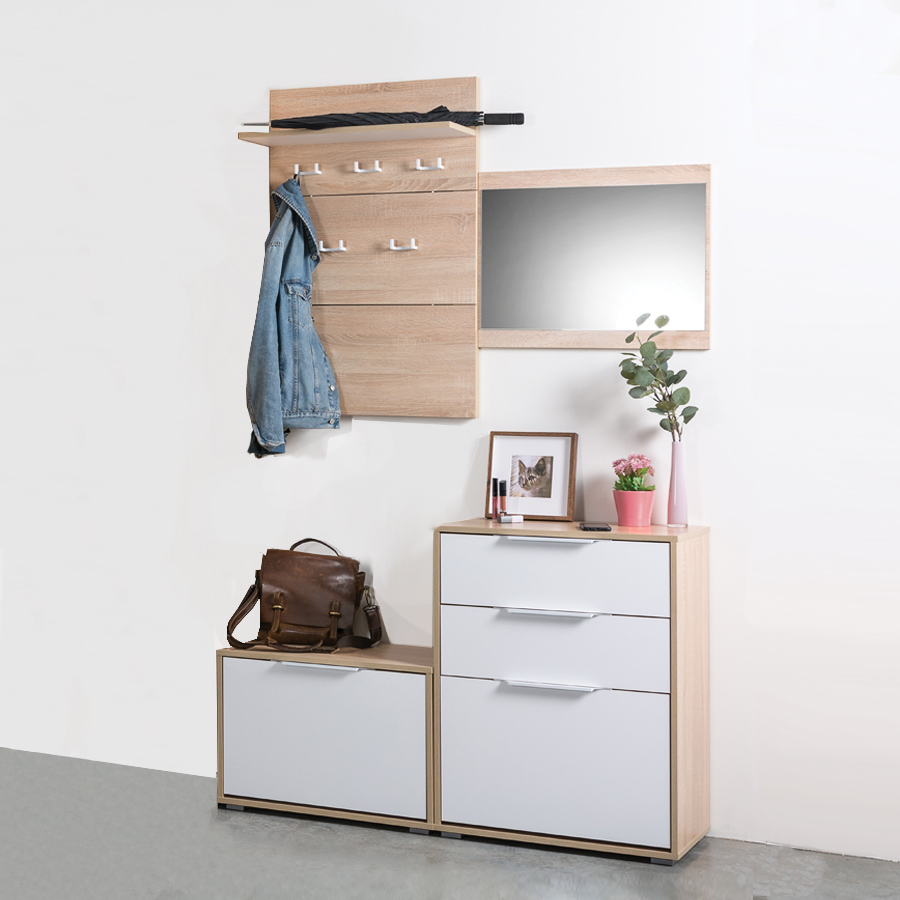 Описание линии мебели для прихожих Куба: Прихожие Куба - обладательницы всегда ценных достоинств - практичности, удобства и красоты! Предлагаем сотворить свой собственный, уникальный мир любимого Дома, прямо начиная с порога, при помощи мебели для прихожих Куба. Дизайнеры прихожих Куба, объединив эстетику и передовую технологию, создали элегантную коллекцию в современной стилистике. Пастель и древесная фактура корпусов прихожих Куба согревают природной теплотой визуальную прохладу белоснежных фасадов мебели. Актуальный тренд - минимальное декорирование мебели позволяет сформировать лаконичные, интересные ансамбли для любых помещений. Коллекцию Куба представляют 11 предметов - навесные полка, вешалка и зеркало, 3 модели обувницы, стеллаж и 4 вида шкафа для одежды. Модули прихожей Куба способны, буквально на нескольких квадратных метрах, создать комфортный, функциональный и безопасный интерьер. Для больших холлов и приёмных офисов из набора для прихожих Куба можно собрать бесконечное количество оригинальных композиций. Незамысловатые формы и абсолютная эргономичность прихожих Куба делают благородную элегантность интерьеров по-домашнему уютной. Корпуса и фасады мебели Куба выполнены из ламинированной ДСП 16 мм. Опоры - серый пластик, лицевая фурнитура - металл, цвет белый. Современная фурнитура, использованная в производстве прихожих Куба, отличается высокой надёжностью и долговечностью. Распашные двери модулей прихожих Куба на четырёхшарнирных петлях, выдвижные ящики на шариковых направляющих полного выдвижения. Мебель прихожих Куба поставляется в разобранном виде, с комплектом фурнитуры, упакованная в 4-х слойный гофрокартон. Соответствие ГОСТам и требованиям Таможенного Союза прихожих Куба и материалов их производства подтверждено сертификатами.