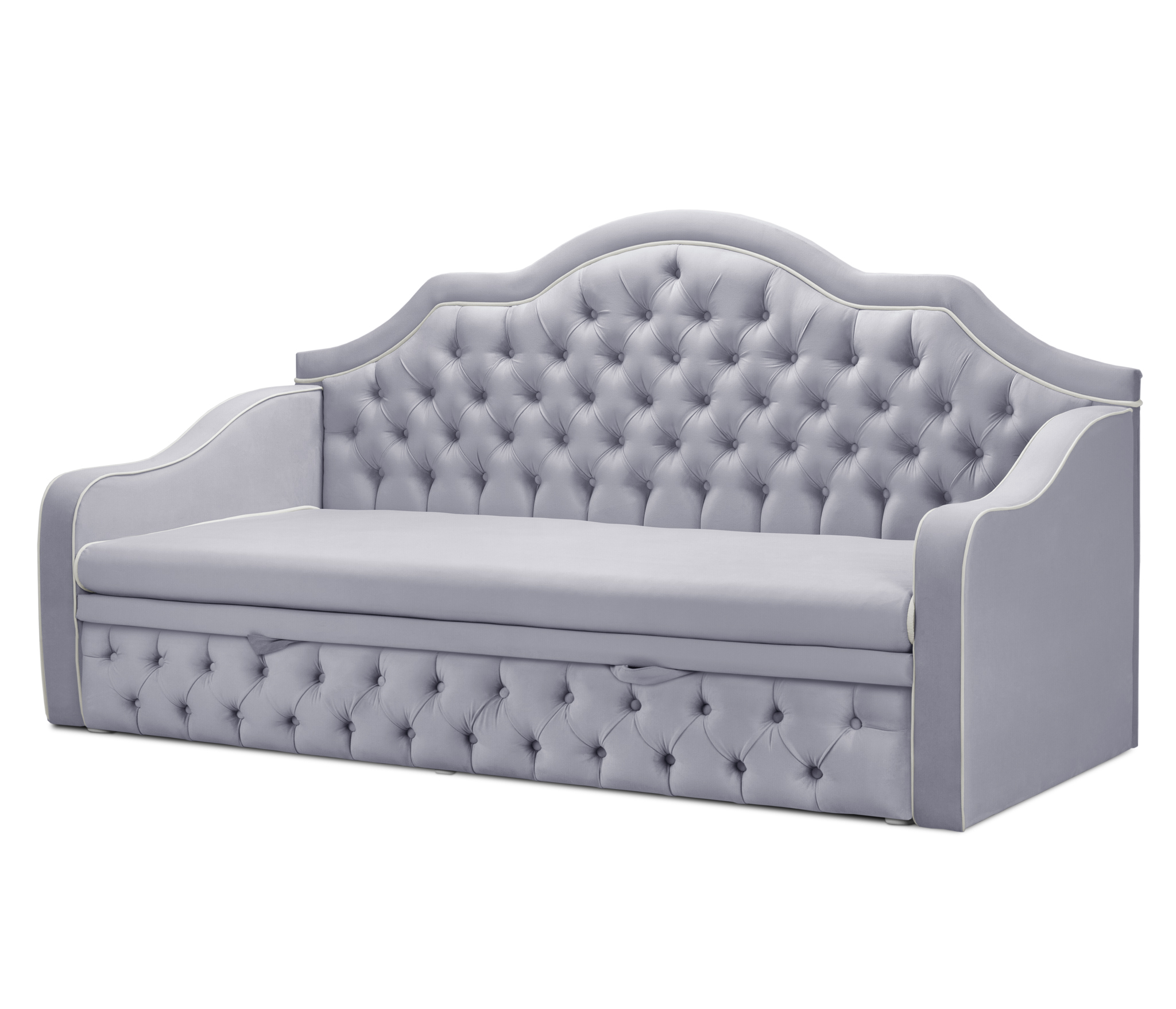 Софа Инфинити с дополнительным спальным местом - идеальный вариант для современной детской комнаты или спальни. Спинку с плавными линиями украшает качественная каретная стяжка ручной работы. Для создания особого шарма, применяются пуговицы, которые можно заменить на пуговицы-стразы. Софа Инфинити выполнена в антивандальной ткани,с отличными техническими характеристиками. Валики приобретаются отдельно.При заказе возможен выбор других оттенков.. Ящики укомплектованы направляющими для плавного открывания.